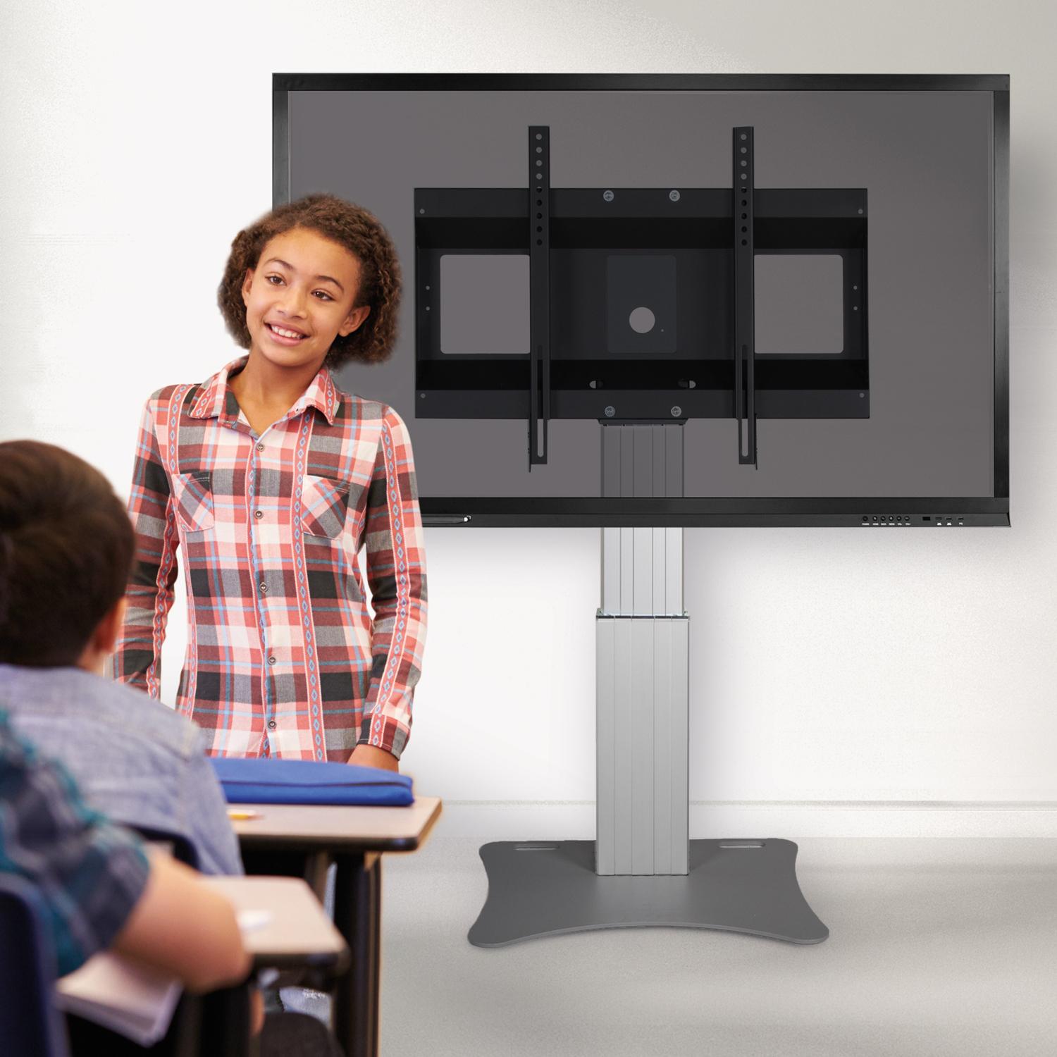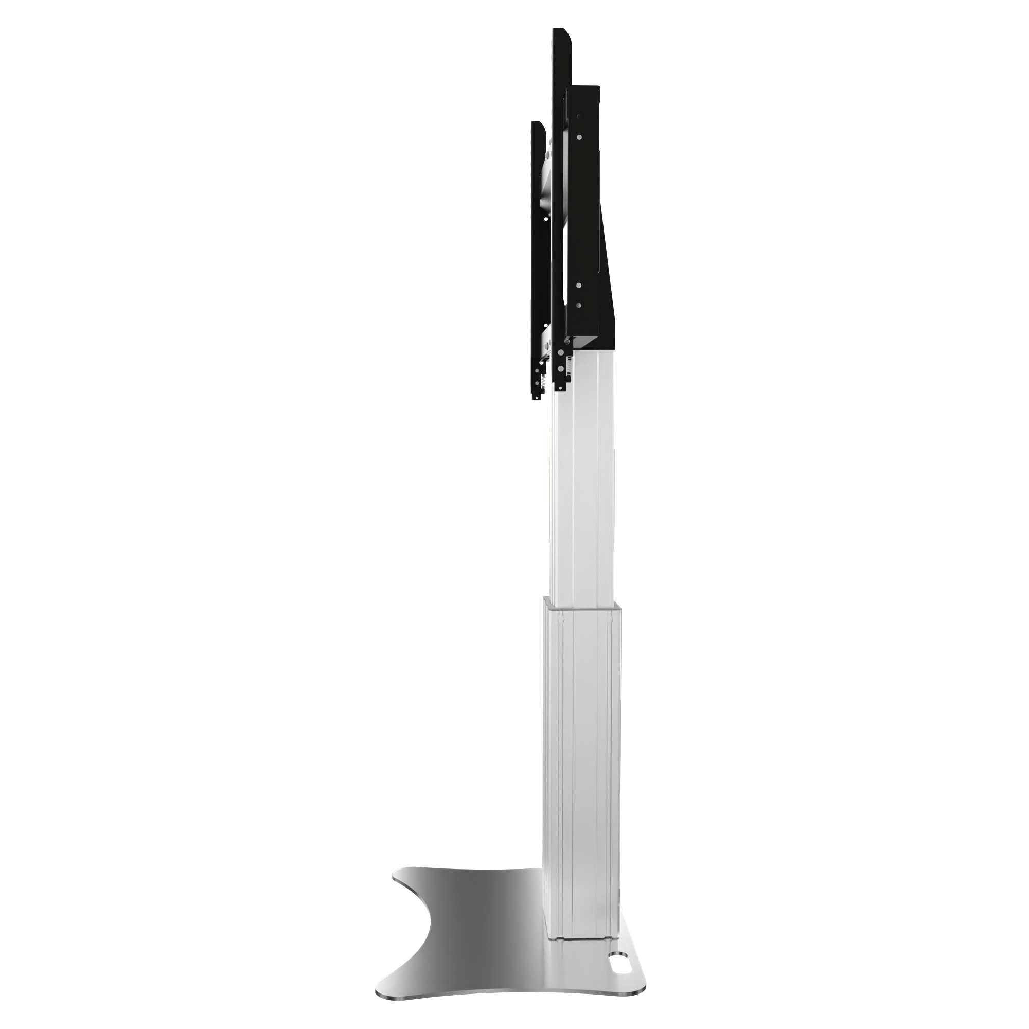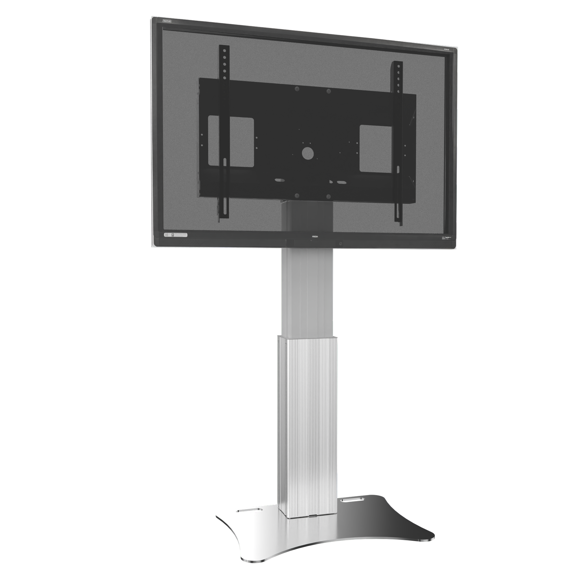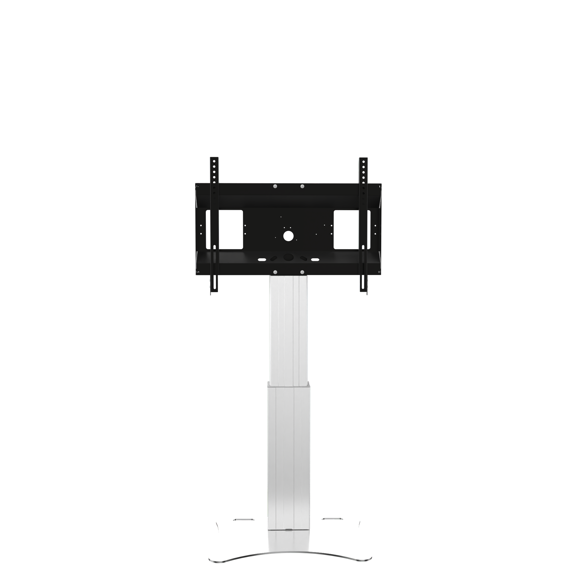 Elektrisch in hoogte verstelbare displaystandaard voor 42"-100" (interactieve) flat panel displays. Geschikt voor wandmontage. De SCETAPL is geschikt voor displays met een schermdiagonaal tot 100". Het systeem omvat een stabiel frame voor de opname van het display met geïntegreerd kabelbeheer en twee ophangrails met snelsluitingen voor een snelle en eenvoudige montage van het display. Het SCETAPL-display standaard wordt geleverd met een pyloonzuil met een slag van 50 cm Onder de pylonzuil wordt een 8 mm dikke stalen plaat bevestigd Het systeem kan vrijstaand in de ruimte worden geplaatst of aan een lichtgewicht wand worden gemonteerd Uitsparingen/handgrepen in de voetplaat maken gemakkelijker te hanteren.De plaat is van kunststof gepoedercoat in wit aluminium.Het systeem wordt in drie pakketten gedemonteerd geleverd en kan per koeriersdienst worden verzonden.
