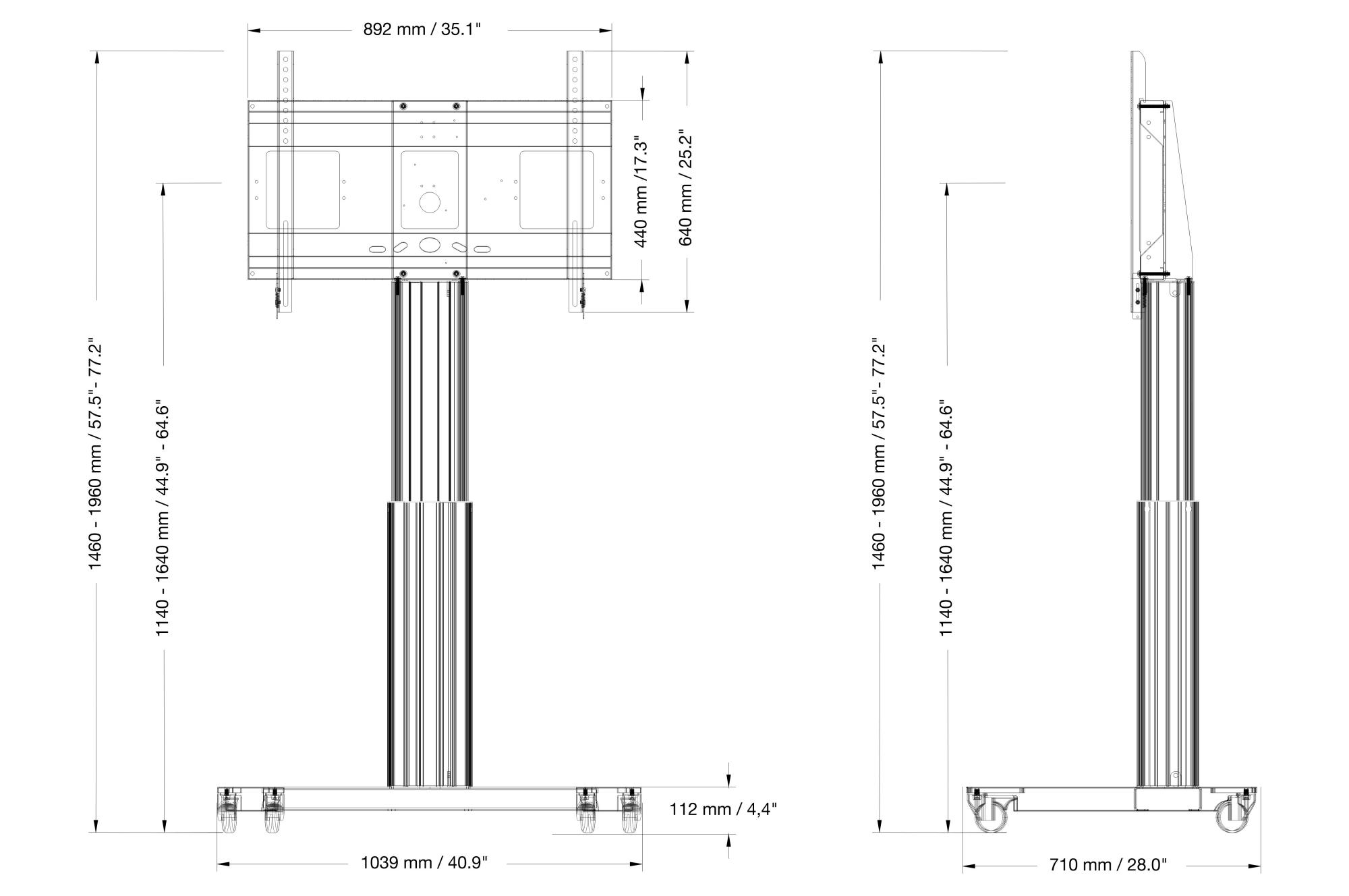 Elektrisch in hoogte verstelbare tv-trolley standaard; mobiele monitorstandaard geschikt voor gebruik met alle beeldschermen van 42"-100" schermdiagonaal. Bekend om zijn stabiliteit en veelzijdigheid, is de SCETAVABK tv-trolley al jaren een van de wereldwijde bestsellers van Conen Mounts. De mobiele monitorstandaard is ontworpen voor intensief dagelijks gebruik en voor het veilig vasthouden van displays met een schermgrootte tot 100" of 136 kg. Het mobiele montagesysteem SCETAVABK is uitgerust met een centrale mastkolom en een 50 cm-hub. De mogelijkheid om tal van accessoires zoals pc-planken, transportgrepen en whiteboard-zijvleugels (voor displays tot 86") dragen ook bij aan het verhogen van de gebruiksvriendelijkheid en het verbeteren van de mogelijke toepassingen in de trainingsruimte.