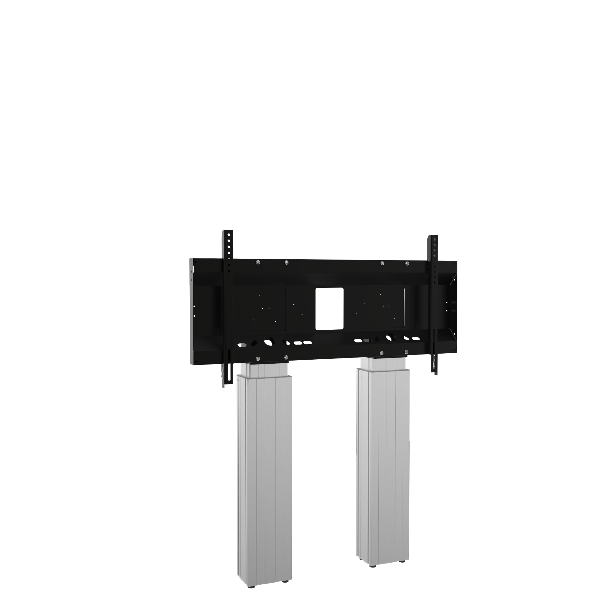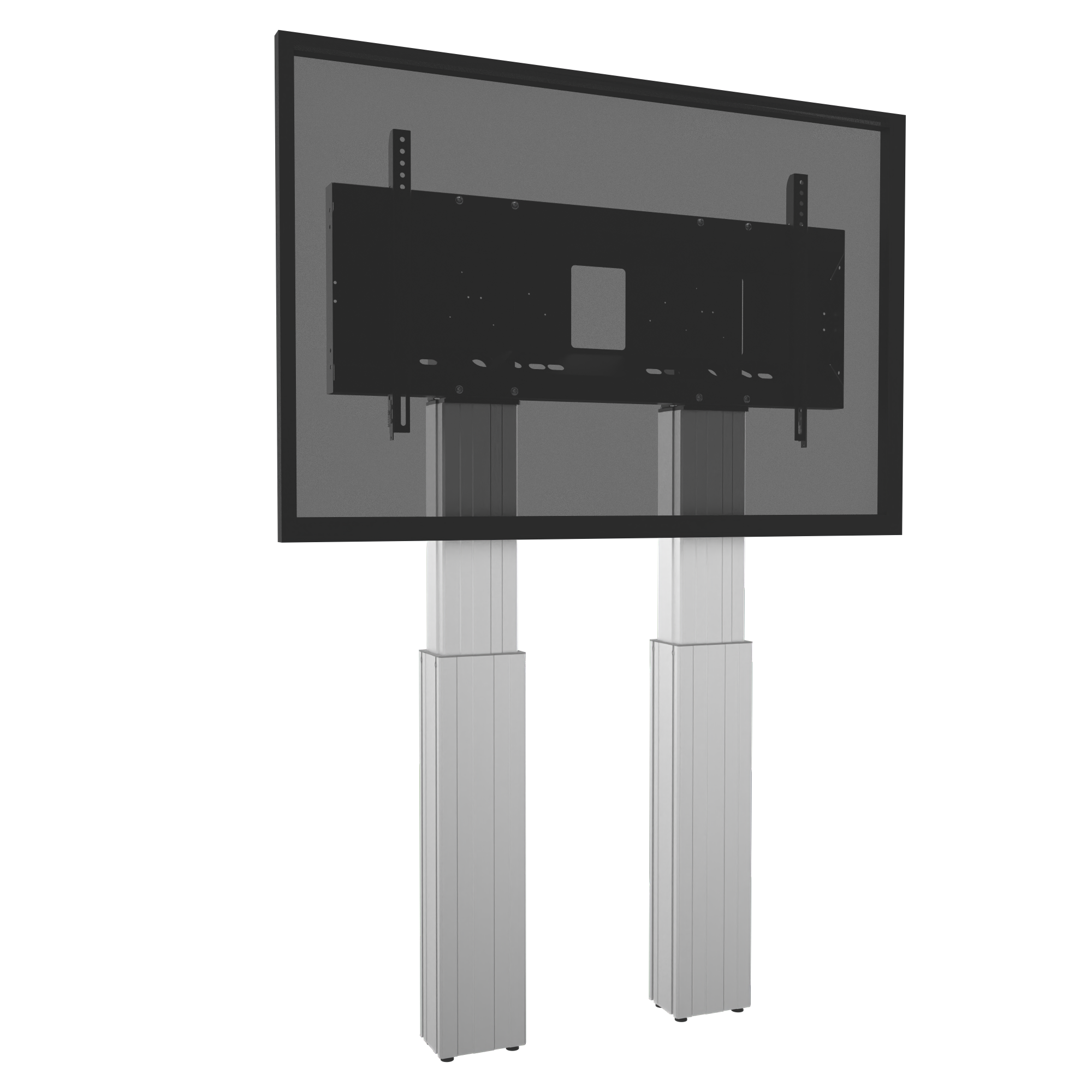 Elektrisch in hoogte verstelbare TV standaard; monitor muurbeugel met XL-beeldschermbeugel. Speciaal ontwikkeld voor montage van zware touchscreens. De gemotoriseerde, in hoogte verstelbare monitor muurbeugel is voorzien van een extra breed frame voor display montage. Het systeem wordt geleverd met twee gemakkelijk telescopische Conen Mounts mastkolommen en is 50 cm in hoogte verstelbaar. Het product is verdeeld in 3 pakketten. Elk van de pakketten is geschikt voor koeriersdiensten.