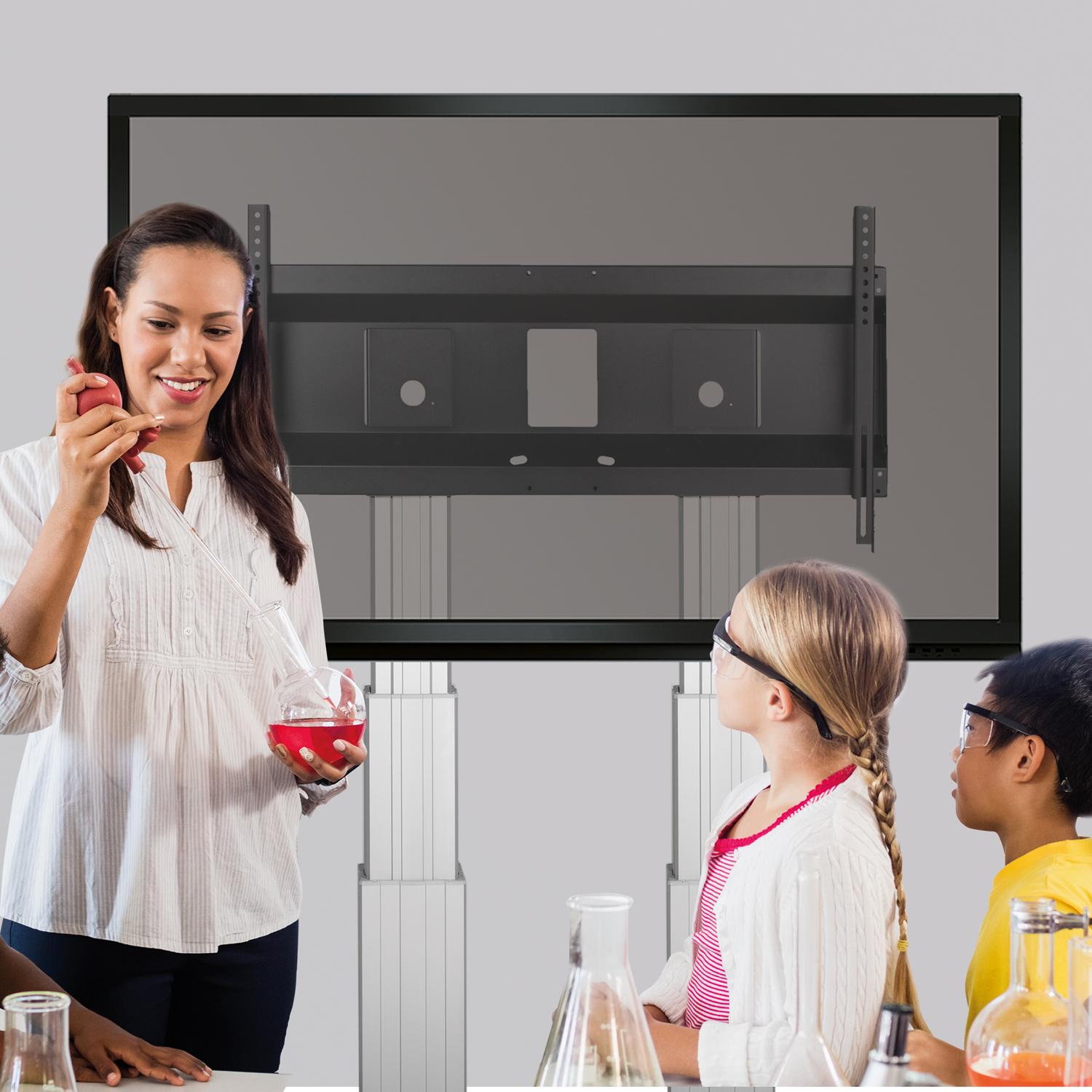 Elektrisch in hoogte verstelbare monitor muurbeugel met XL-beeldschermbeugel. Speciaal ontwikkeld voor montage van zware schermen. De gemotoriseerde, in hoogte verstelbare monitor muurbeugel is voorzien van een extra breed frame voor display montage. Het systeem wordt geleverd met twee driedelige Conen Mounts mastkolommen en is 70 cm in hoogte verstelbaar. Het product is verdeeld in 3 pakketten. Elk van de pakketten is geschikt voor koeriersdiensten.