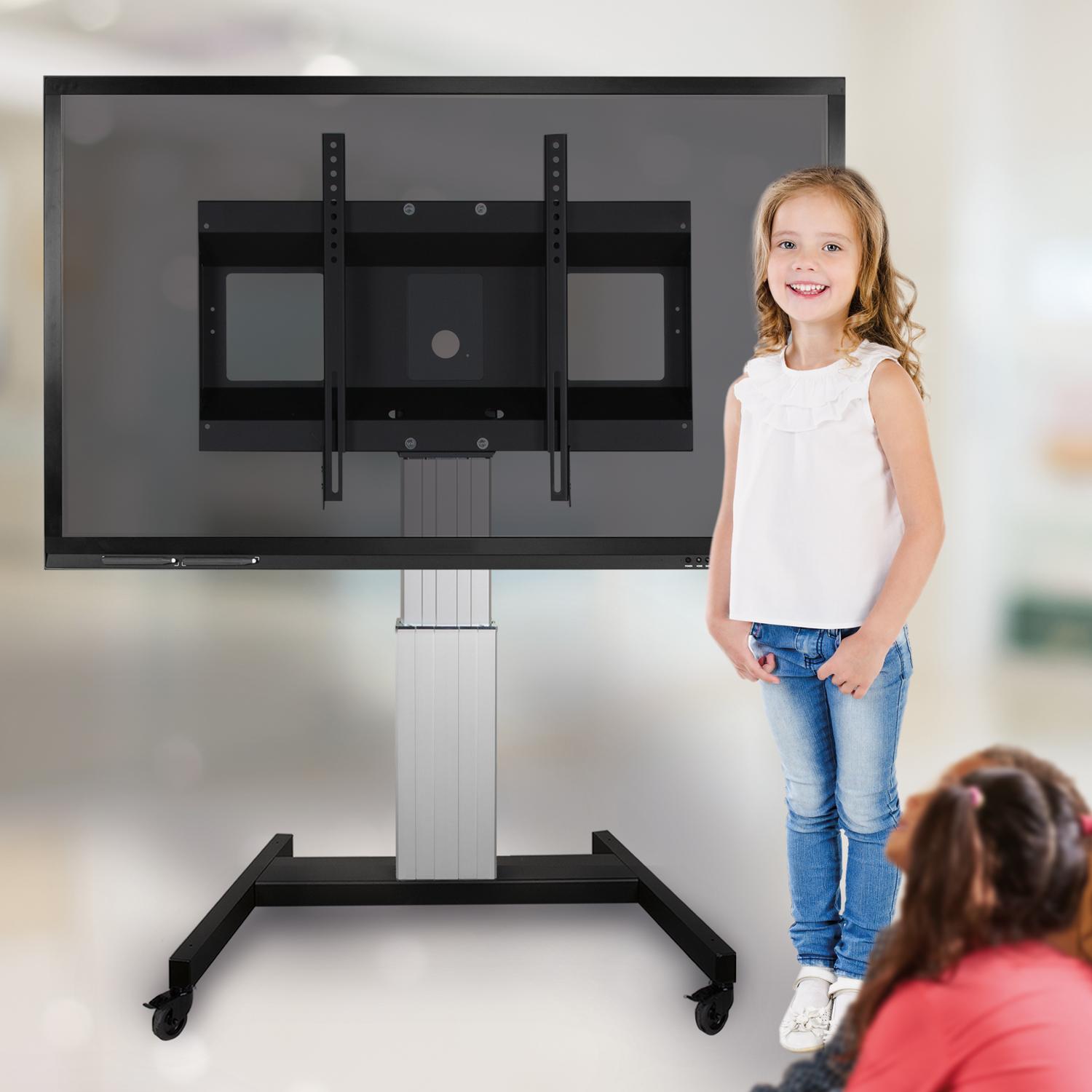 Elektrisch in hoogte verstelbare tv-trolley, verrijdbaar monitorstatief, 28 cm slag
