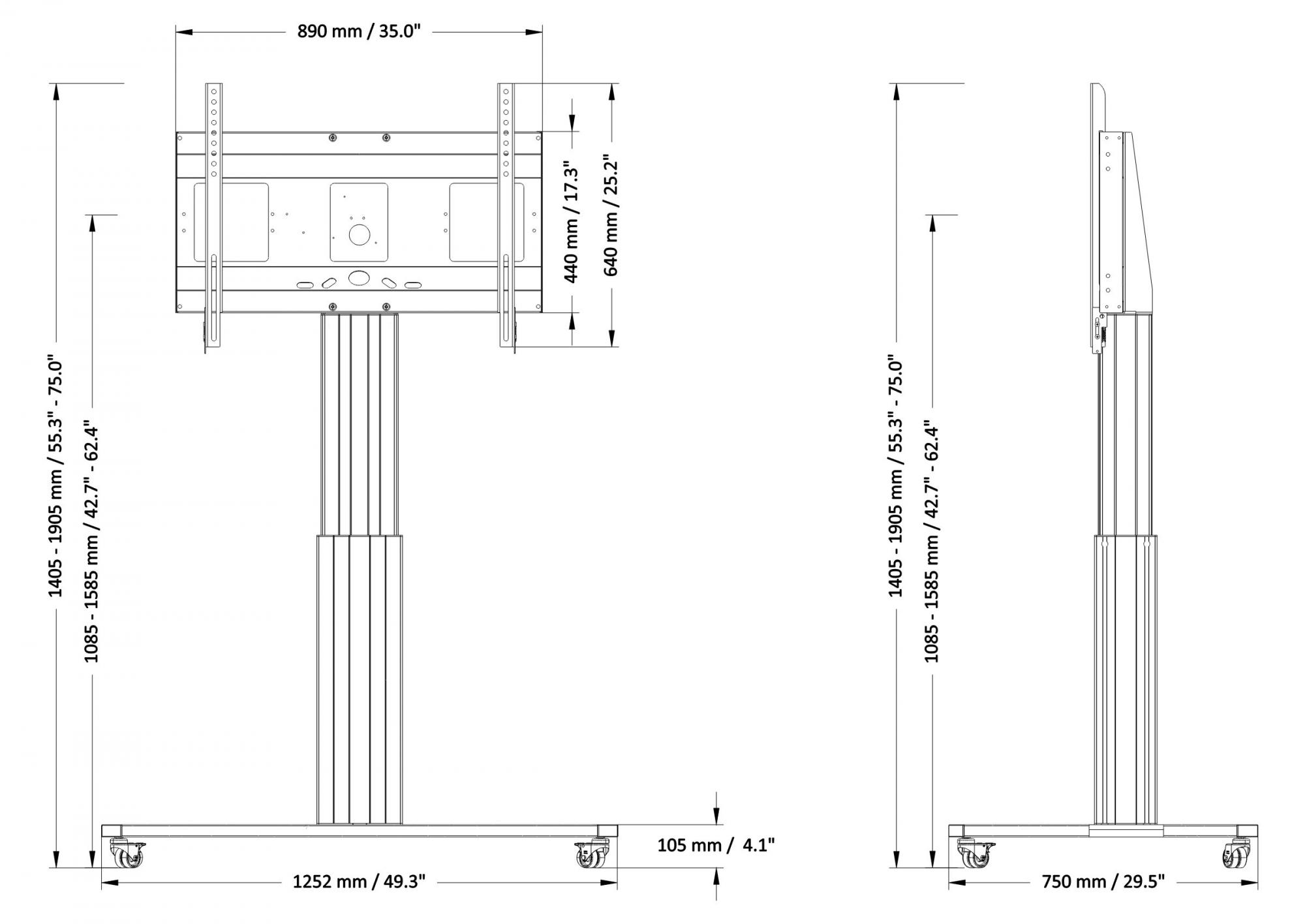 Elektrisch in hoogte verstelbare tv-trolley standaard; mobiele monitorstandaard geschikt voor gebruik met alle beeldschermen van 42"-100" schermdiagonaal. Bekend om zijn stabiliteit en veelzijdigheid, is de SCETACB mobiele monitorstandaard al jaren een van de wereldwijde bestsellers van Conen Mounts. De monitorstandaard is ontworpen voor intensief dagelijks gebruik en voor het veilig vasthouden van displays met een schermgrootte tot 100" of 136 kg. Het SCETACB mobiele montagesysteem is uitgerust met een centrale mastkolom en een 50 cm-hub. De mogelijkheid om tal van accessoires aan te sluiten zoals pc-planken, transportgrepen en zijvleugels voor whiteboards draagt verder bij aan het vergroten van de gebruiksvriendelijkheid en het verbeteren van de gebruiksmogelijkheden in de trainingsruimte. Het product wordt gedemonteerd geleverd in drie pakketten. Alle verpakkingseenheden zijn geschikt voor pakketdienst.
