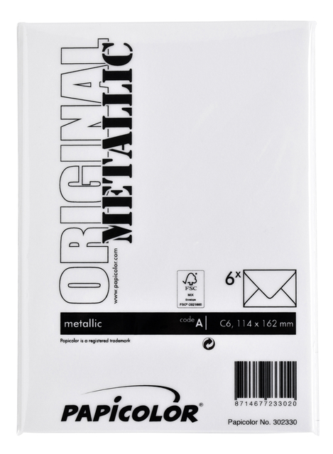 Properties "Envelop Papicolor C6 114x162mm metallic parelwit pak à 6 stuks"