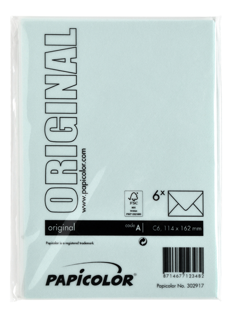 Properties "Envelop Papicolor C6 114x162mm zeegroen pak à 6 stuks"