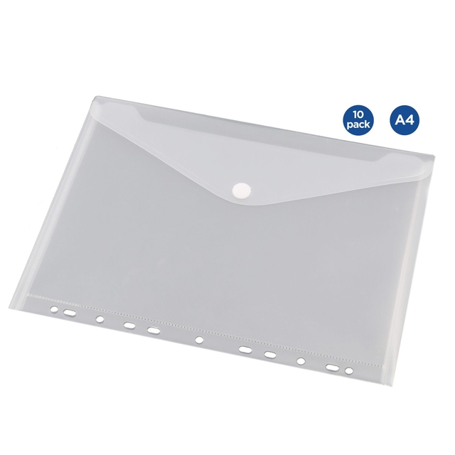 Hoogwaardige showtassen met een heldere matte afwerking, ideaal voor dagelijks gebruik thuis, op kantoor of op school. De versterkte strip met 4 gaten en meerdere perforaties maakt het handig opbergen van documenten in ordners en ringbanden mogelijk en beschermt ze tegen vocht, stof en vuil. Opent aan de linkerkant voor gemakkelijke toegang tot documenten zonder dat je het ringbandmechanisme los hoeft te maken en een klep om te voorkomen dat de papieren eruit glijden. Het copy safe en zuurvrije materiaal zorgt voor een langdurige bescherming van de documenten.