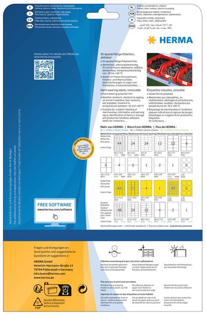 Herma is een toonaangevende fabrikant van zelfklevende etiketten en etiketteersystemen. Het bedrijf is opgericht in 1906 in het Duitse Stuttgart en heeft zich sindsdien ontwikkeld tot een wereldwijde speler op het gebied van labeloplossingen. Het merk staat bekend om zijn hoogwaardige producten en innovatieve oplossingen voor een breed scala aan toepassingen.