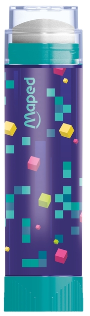 * Een tube gum, ergonomisch, schoon en net zo gemakkelijk te gebruiken als een tube lijm! * De nieuwe Maped tube gum is een super praktische gum! Beschermd door de plastic huls blijft de gum schoon in de etui. Het roterende systeem om de gum uit de buis te halen is gemakkelijk te gebruiken. * De gum is efficiënt en nauwkeurig. * De Pixel Party tube gum is de nieuwe praktische en trendy gum van Maped! Het decor maakt het een product dat geliefd is bij kinderen.