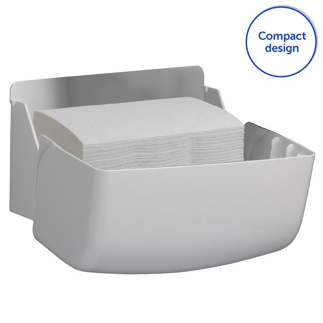 * De essentiële dispenser voor gevouwen handdoeken voor elk bedrijf. * Deze dispenser is geschikt voor veel verschillende producten voor de toiletruimte, bevordert hygiëne en helpt kosten te beheersen door een geControleerde afgifte. * Het strakke en eigentijdse ontwerp maakt de dispenser het perfecte product voor elke toiletruimte. De dispenser is gemaakt met afgeronde hoeken en is in één handeling te reinigen met een poetsdoek. De afgeronde bovenkant voorkomt ophoping van vuil, stof en viezigheid. * Onze unieke en gepatenteerde bescherming tegen overmatig vullen zorgt ervoor dat het navullen eenvoudig is en voorkomt vastlopen en verspilling. * Dit product is onderdeel van ons afgestemde assortiment van dispenserproducten voor de toiletruimte om uw toilet een stijlvolle en professionele uitstraling te geven. * Dispensermaat 15, 9cm (L) x 28, 7cm (B) x 14, 2 cm (D)