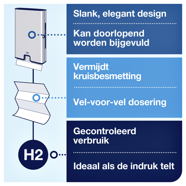 We hebben ze op voorraad en zullen ze snel aan je kunnen leveren. Tork biedt vaak een totaaloplossing, je kunt houders en vullingen hand in hand bestellen. Tork levert wereldwijd aan gebruikers in de sectoren: gezondheidszorg, horeca, industrie en office. Door de jarenlange ervaring en expertise op het gebied van hygi?ne en duurzaamheid, is Tork marktleider in verschillende sectoren. Tork is onderdeel van het SCA merkportfolio.