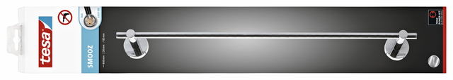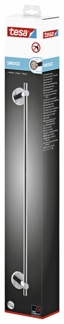 * Het aan de muur bevestigen van de zelfklevende tesa® Smooz handdoekhouder is eenvoudig zonder te boren. * De stang heeft een eenvoudig ontwerp. * De tesa® Smooz handdoekhouder heeft een minimalistisch ontwerp met een hoogglans verchroomde afwerking en is een prachtig badkameraccessoire. * Het biedt de ideale plek om een handdoek te drogen. * Hij wordt gemonteerd met een zelfklevende oplossing die net zo betrouwbaar is als conventionele montagemethoden. * Na 12 uur droogtijd bereikt de lijm zijn maximale prestatie. * Maar het is ook gemakkelijk om hem te verwijderen, zonder lijmresten, en hem ergens anders opnieuw te gebruiken met adapter BK20-2. * Hoogglans verchroomd metaal, zelfklevend, 50x640x85. * Lees voor montage of uw wand hiervoor geschikt is.