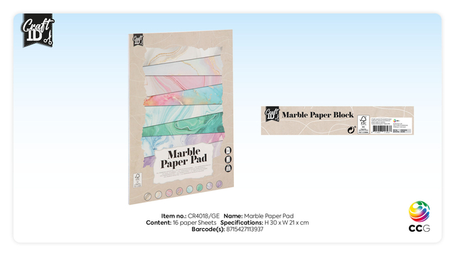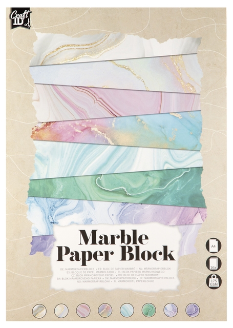 Dit luxe A4-papier van 220 gram is perfect voor al je knutselprojecten en komt in een handig pakket van 16 vellen. Met prachtige marmerpatronen voegt dit papier een elegante en moderne touch toe aan je creaties. Ideaal voor kaarten, scrapbooking of unieke kunstwerken. De verpakking is FSC gecertificeerd.