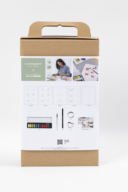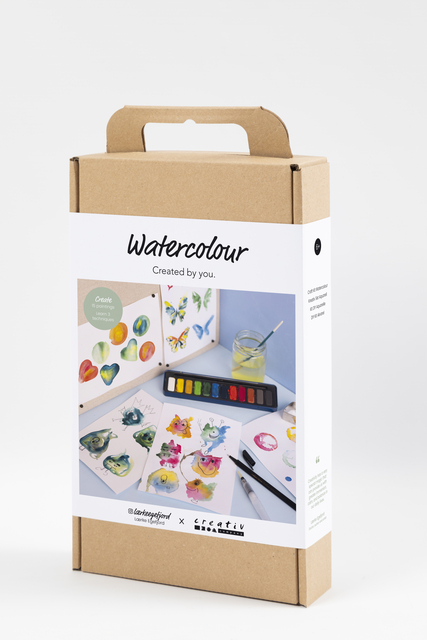 Met onze set van Creativity in a Box leren kinderen de leuke eigenschappen van aquarel kennen en raken vertrouwd met dit soort verf. Ontworpen in samenwerking met de arts, schrijfster en kunstenares Lærke Egefjord. De set bevat alle materialen en instructies die u nodig hebt. Hebt u kinderen die graag schilderen? Probeer dan samen onze set van Creativity in a Box. Ons instructieboekje laat u verschillende kindvriendelijke technieken zien – hier kan iedereen slagen en uitstekende resultaten behalen. Kinderen leren hoe ze prachtige kleurenmixen en -effecten maken. Ze kunnen hartjes, zeepschaaltjes en vlinders schilderen – en hun fantasie de vrije loop laten om hun eigen droomdier te schilderen. Het resultaat: kleurrijke meesterwerken die in de eigen kamer aan de muren prijken .
