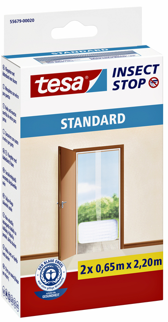 * tesa® Insect Stop Klittenband STANDARD voor deuren is een voordelige oplossing om je huis vrij te houden van vervelende vliegen, spinnen, muggen en ander ongedierte. * Het werkt als natuurlijke bescherming tegen muggen en kan gemakkelijk aan deurkozijnen worden bevestigd. Het is zelfs nog eenvoudiger om deze weer te verwijderen. Je hoeft geen gaten te boren in de kozijnen van je terras- of balkondeur, maar je bevestigt de hor gewoon met de meegeleverde, zelfklevende klittenbandtape. * Het kan op elk gewenst moment weer worden verwijderd zonder zichtbare sporen. De tweedelige hor kan precies op maat worden geknipt en je kunt er gemakkelijk doorheen lopen en toch ongedierte buitenshuis houden. * Afmeting 2x 0.65x2.20m. *Antraciet. * Eenvoudig te installeren met zelfklevende klittenband. * Makkelijk op maat te snijden. * Deuren zijn eenvoudig te openen en te sluiten. * Wasbaar op max 30°C