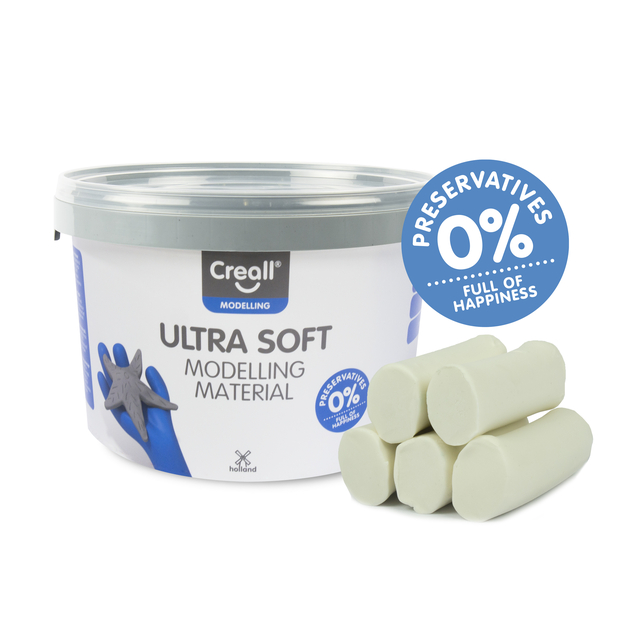 * Creall ultra soft klei is zeer soepel en gemakkelijk kneedbaar boetseermateriaal voor het jonge kind vanaf 2 jaar. * Zijdezacht. * Wordt niet hard, droogt niet uit en is steeds opnieuw te gebruiken. * Ondersteunt de ontwikkeling van de fijne motoriek. * Naast de ontwikkeling van pols en duim gewricht, worden ook de vingers afzonderlijk gestimuleerd. * Wanneer de klei wat stugger aanvoelt verdeel de rollen klei dan in kleine plakken, op deze manier wordt de klei snel zacht en soepel. * Glutenvrij. * In handige emmer om de klei in te bewaren. * Kleur: wit. * Inhoud: 1100 gram.