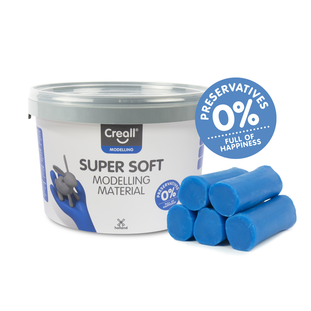 * Superzacht boetseermateriaal. * Blijft zacht en droogt niet uit. * Ondersteunt de ontwikkeling van de fijne motoriek. * Naast de ontwikkeling van pols en duim gewricht, worden ook de vingers afzonderlijk gestimuleerd. * Glutenvrij. * Geschikt voor kinderen vanaf 3 jaar. * Kleur: blauw. * Inhoud: 1750 gram.
