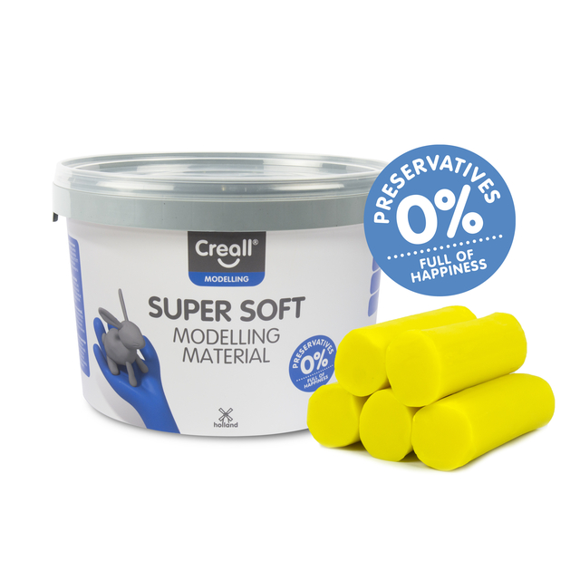 * Creall ultra soft klei is zeer soepel en gemakkelijk kneedbaar boetseermateriaal voor het jonge kind vanaf 2 jaar. * Zijdezacht. * Wordt niet hard, droogt niet uit en is steeds opnieuw te gebruiken. * Ondersteunt de ontwikkeling van de fijne motoriek. * Naast de ontwikkeling van pols en duim gewricht, worden ook de vingers afzonderlijk gestimuleerd. * Wanneer de klei wat stugger aanvoelt verdeel de rollen klei dan in kleine plakken, op deze manier wordt de klei snel zacht en soepel. * Glutenvrij. * In handige emmer om de klei in te bewaren. * Kleur: geel. * Inhoud: 1100 gram.