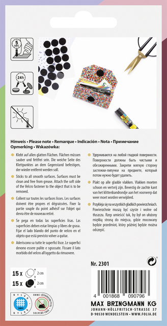 * Hook & loop klittenband komt altijd goed van pas. * Handig bij een hobby- of voor een decoreerproject, wanneer je objecten aan elkaar wil bevestigen. * Dit zelfklevende klittenband zorgt voor veel gemak. * Door de plakstrip kunt u het klittenband bijna overal gemakkelijk op bevestigen. * Eenvoudig om op maat te knippen.