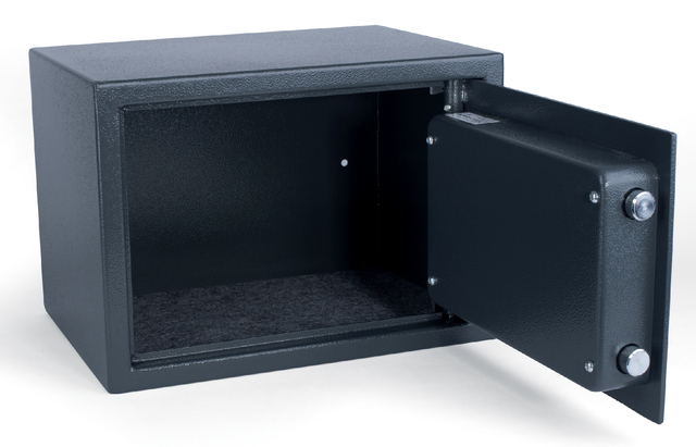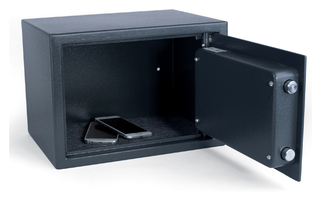 * De Pavo high security kluis is ideaal voor persoonlijk gebruik of voor op kantoor. * 2 stalen bouten (dubbele bout vergrendeling) garanderen de veilige sluiting van de stalen deur. * De kluis wordt geopend met een kruissetsleutel. * Afmetingen kluis: 350x250x250mm - 15.7 L. * Binnenmaten: 230x245x345mm. * Dubbelwandige deurdikte van 4mm dik en bodydikte van 2mm. * Incl. 3x sleutels en bevestigingsmateriaal. * Materiaal: staal. * Kleur: donkergrijs