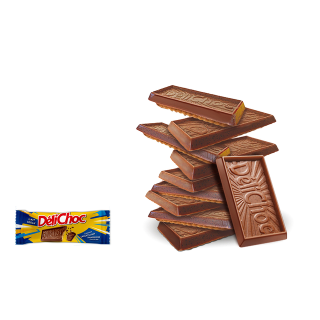 Een knapperig koekje met een unieke knapperige tablet chocolade, een onweerstaanbare combinatie die je dag door elkaar zal schudden! Hygienisch per stuk verpakt.