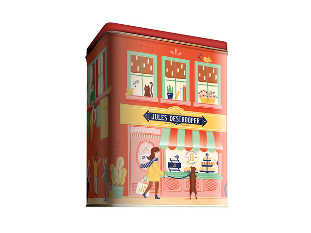 * Gloednieuwe editie van de Vlaamse huisjes blikken van vroeger, die in een frisser en hedendaags jasje gestoken werden. * Dit blik is gevuld met Amandelbrood, Natuurboterwafels en Parijse Wafels. Assorti artikel verkrijgbaar in de kleuren blauw, geel of rood. *Uitlevering van kleuren is willekeurig.