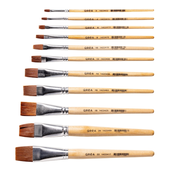 Kwastenset Qrea synthetisch haar – set van 11 breedtes (nr. 2 t/m 22)