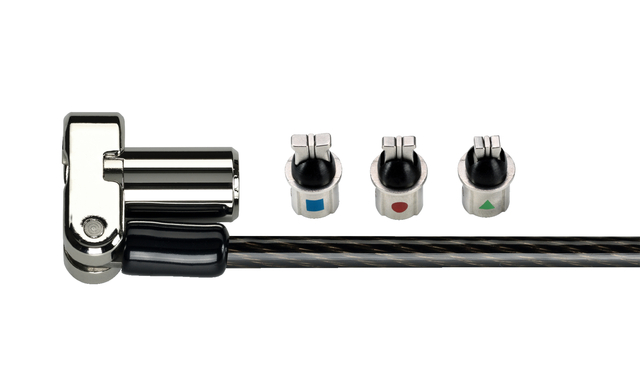 Het Universal 3-in-1 Keyed Laptop Lock past op alle beveiligingsuitsparingen van laptops (Standaard, Nano en Wedge-Shaped) om uw vergrendelingsoplossing toekomstbestendig te maken. De slotuiteinden kunnen eenvoudig verwisseld worden, terwijl een koord ongebruikte slotuiteinden bij de hand houdt. Een algemeen sleutelsysteem van 5 mm, gepatenteerde Hidden Pin™-technologie en een met koolstof versterkte staalkabel bieden een uitstekende beveiliging tegen pogingen tot lockpicking en diefstal. Het draaiende slothoofd kan flexibel bewegen zodat u de sleutel er makkelijk in kunt steken. Aanvullende kenmerken zijn onder meer Register & Retrieve™ voor het snel, veilig en eenvoudig vervangen van sleutels en vijf jaar garantie, gedekt door Kensington, uitvinder en wereldwijde marktleider op het gebied van beveiligingssloten voor laptops. Alle sloten van Kensington zijn gecontroleerd en getest op sterkte, duurzaamheid en mechanische bestendigheid.