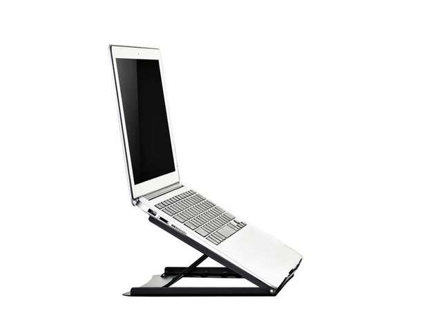 * Dit is een universele notebook standaard waarmee u uw notebook in een ergonomische positie plaatst. *Gemakkelijk verstelbaar in 5 standen ideaal voor de juiste kijkhouding ten opzicht van de notebook. * Door zijn design eenvoudig in te klappen, licht gewicht en mobiel. * Het unieke design, gemaakt van staal met poedercoat afwerking en siliconen anti-slip pads, laat warme lucht eenvoudig wegstromen waardoor oververhitting van de notebook wordt voorkomen. * Hierdoor blijft uw notebook snel en betrouwbaar.