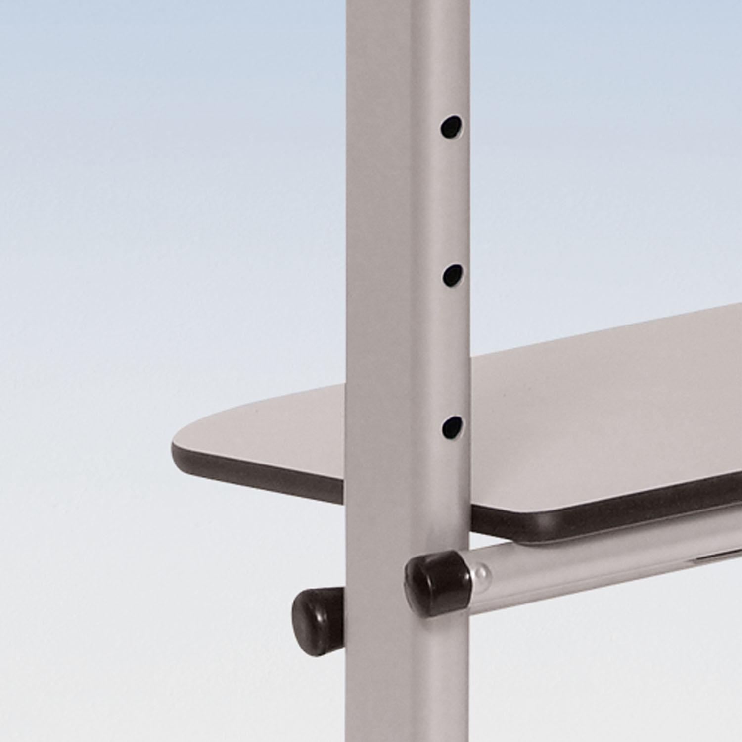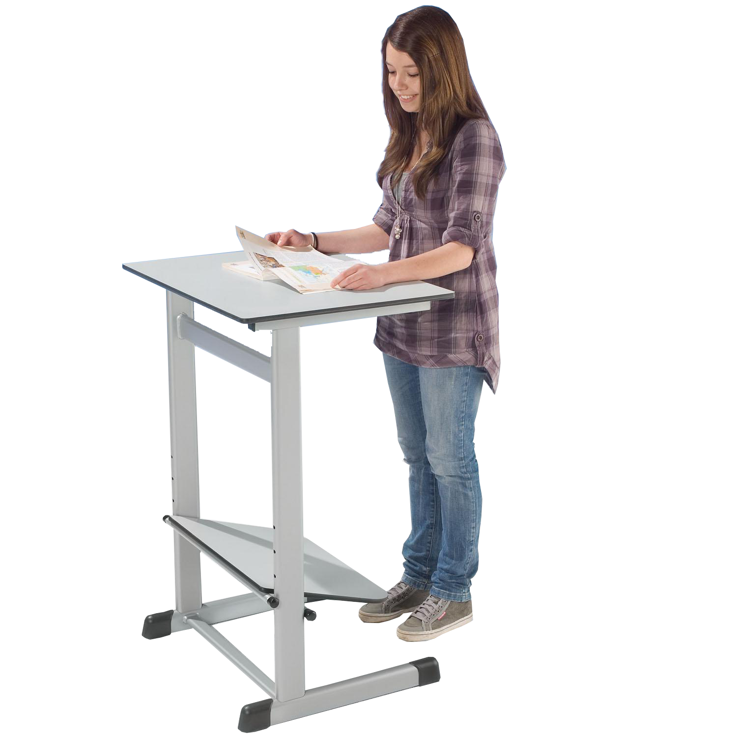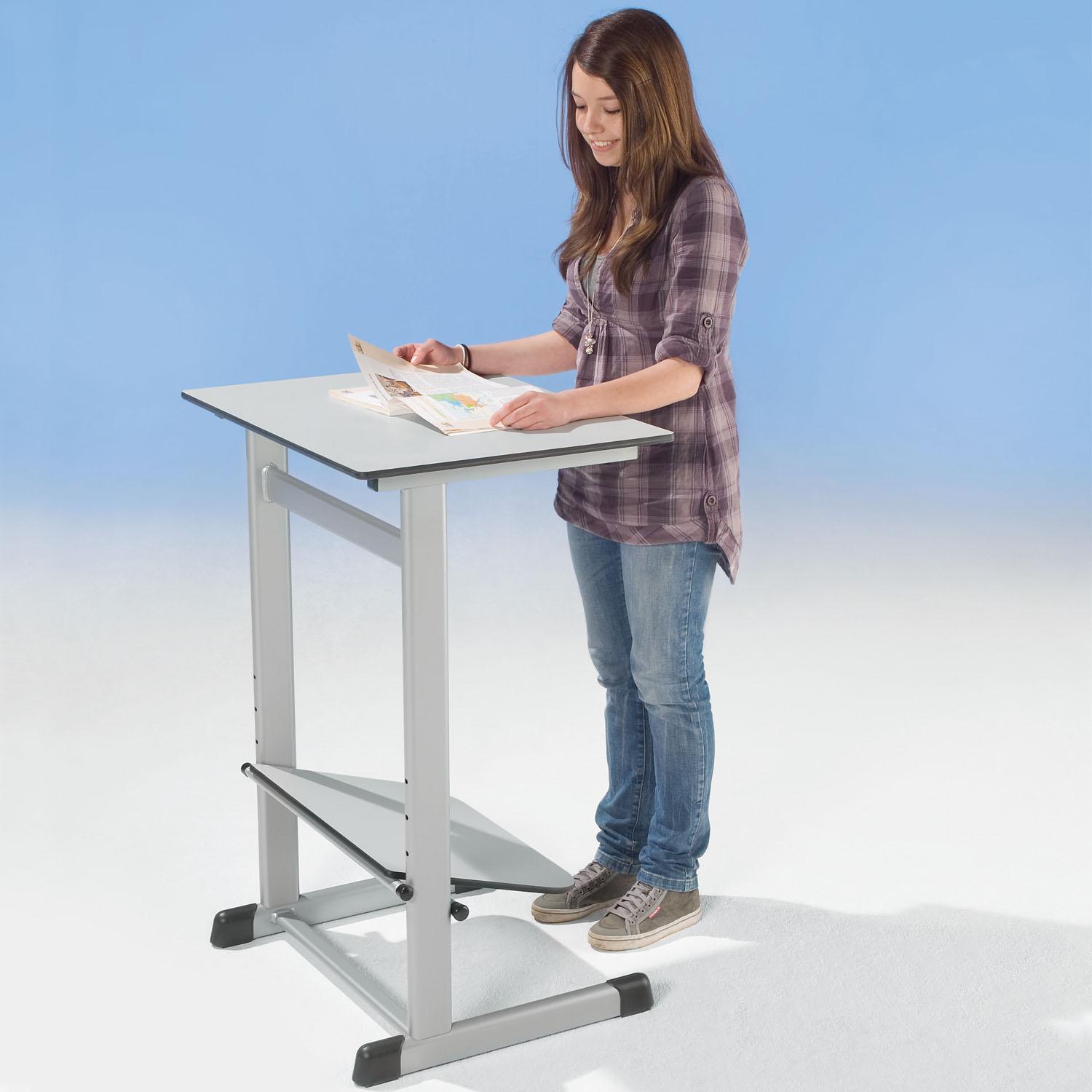 Gezond werken met een mentaliteitsverandering! Onze leerlingtafel met in hoogte verstelbare voetensteun is zowel zittend als staand te gebruiken. De tafel staat op een kunststof gepoedercoat sledeframe met trapbeschermkappen, die optioneel verkrijgbaar zijn met viltglijders (FG-ST). voetsteunhoogtes: 22/34 cm; 28/40cm; 34/46cm; 40/52cm