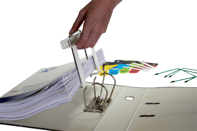* Hevelapparaat voor het moeiteloos uitlichten van een ordnerinhoud. * Met de uitneembare hevel kunt u documenten uit de bundel nemen en terugplaatsen. * Werkt samen met bundelbeugels met schroefdop. * Recyclebaar. * Bevat geen schadelijke stoffen en zware metalen. * Levenslange garantie.
