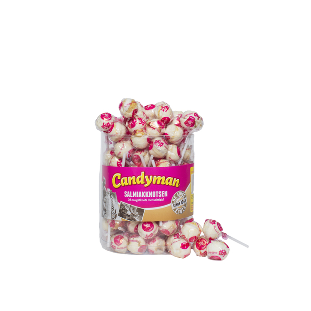 De enige echte Candyman salmiak nougatknotsen hebben een unieke nougatstructuur met een speciale mix van salmiakpoeder. Sinds 1948 genieten generaties van deze karakteristieke, heerlijke salmiaksmaak. De enige echte nougatknots met salmiak. Candyman, de specialist in anders snoepen!