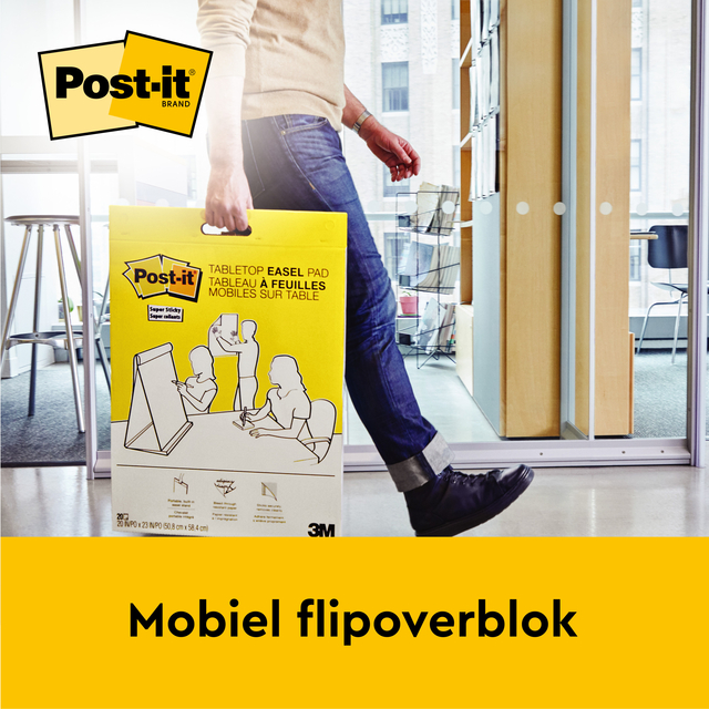 * Post-it® De Table Top Meeting Chart / Dry Erase Board is ideaal om mee te nemen naar vergaderingen, wanneer en waar die ook plaatsvinden. Dit kleinere blok is gemakkelijk mee te nemen en snel op te zetten voor vergaderingen onderweg en geïmproviseerde brainstormsessies. Een standaard met een handige handgreep is geïntegreerd. Dankzij de zelfklevende rug kleven de gerecyclede papiervellen stevig aan de meeste verticale oppervlakken en laten geen sporen achter bij verwijderen of verplaatsen. Denk, schrijf en houd uw werk zichtbaar. Het hoogwaardige rasterpapier is bestand tegen doorlekken. * Post-it® Table Top Meeting Charts zijn perfect om mee te brainstormen, problemen op te lossen en presentaties te geven. Denk, schrijf en houd al uw ideeën zichtbaar. * Deze versie combineert Post-it® Easel Pads met een Dry Erase-oppervlak om tijdelijke notities vast te leggen. * Draagbare vergaderkaart voor vergaderingen, wanneer en waar ze ook plaatsvinden. * De zelfklevende vellen plakken keer op keer op de meeste oppervlakken, blijven tot 2x langer plakken en kunnen worden verplaatst zonder schade aan het oppervlak. Tape of punaises zijn niet nodig, zoals bij standaard flipovervellen. * Wordt geleverd op een ezel voor gebruik op tafel. * Plat opvouwbaar voor eenvoudig opbergen en voorzien van een praktische handgreep. * Papier van hoge kwaliteit dat bestand is tegen doordrukken van markers.