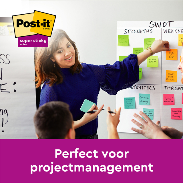* Post-it® Super Sticky Z-Notes hebben tweemaal zoveel kleefkracht (vergeleken met de originele Post-it® Notes). * Deze zelfklevende Z-Notes zijn perfect als je aan het bellen bent of niet beide handen vrij hebt: trek een blaadje los en houd één hand vrij. * Ze zijn bijzonder sterk, uiterst veelzijdig en ontworpen om je bericht te laten opvallen. * 76mmx76mm. * Diverse Kleuren. * 90 vel per blok. * Voordeelpak van 20 + 4 Gratis. * PEFC gecertificeerd.
