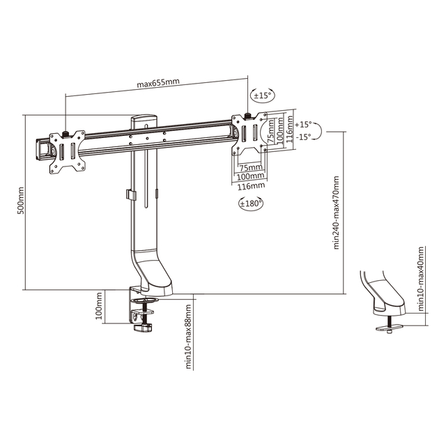 Monitorarm ACT office crossbar 2 schermen verstelbaar