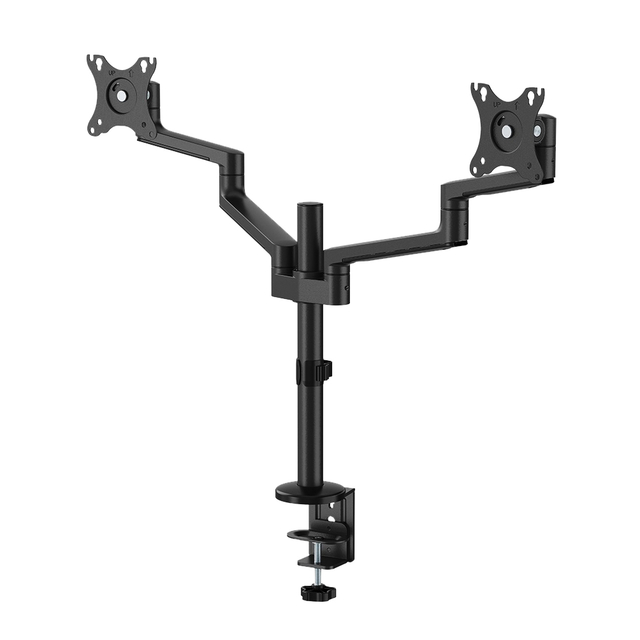 * De DS70-810BL2 is een full motion monitorarm voor 2 schermen tot 32" met een maximaal draagvermogen van 9 kg per scherm. * Dankzij de veelzijdige kantel- (90º), roteer- ( 360º) en zwenktechnologie ( 180º) kan de monitorarm aangepast worden naar iedere gewenste kijkhoek en kan er optimaal geprofiteerd worden van het scherm. * De monitorarm beschikt bovendien over een gasgeveerde hoogte- en diepteverstelling om zo de perfecte werkpositite te creëren. Door op de juiste positie te werken verminder je spanning in ogen, nek en schouders. * Met de slimme kabelmanagementclips wordt er gezorgd voor een overzichtelijke geleiding van de kabels. * De DS70-810BL2 is geschikt voor schermen met een VESA gatenpatroon van 75 x 75 of 100 x 100mm.