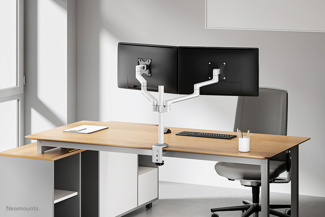* De DS60-425WH2 (NEXT | lite) is een manuele monitorarm tot 27" met max draagvermogen 2 x 8 kg. * Het model is voorzien een premium coating en kabelmanagement door de armen, beschikt over korte T-Rex armen waardoor deze goed bij een akoestische wand gebruikt kan worden, standaard uitgerust met een klem en bureaudoorvoer. * De binnenverpakking van de DS60-425WH2 is vrij van plastic en gemaakt van karton en papier.
