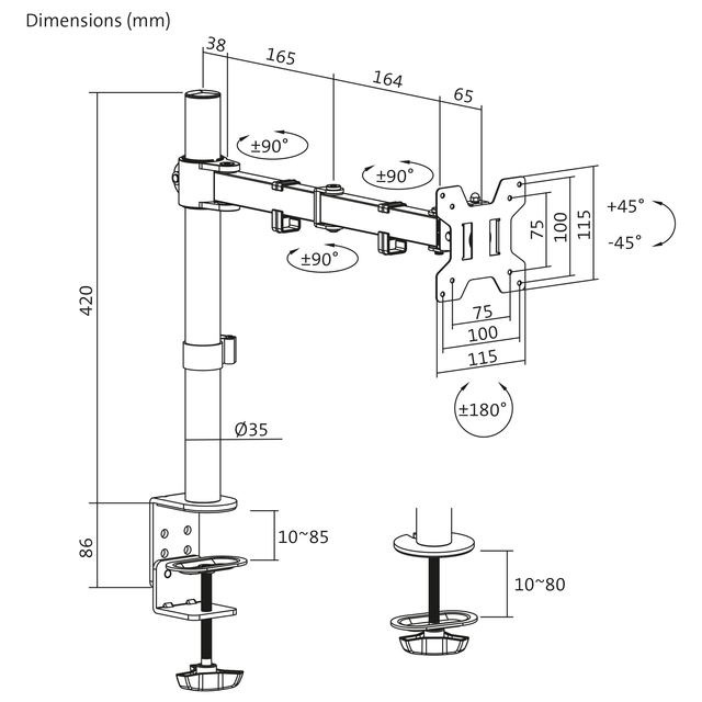 | Soort Computerstandaard / -steun: | Monitorarm |