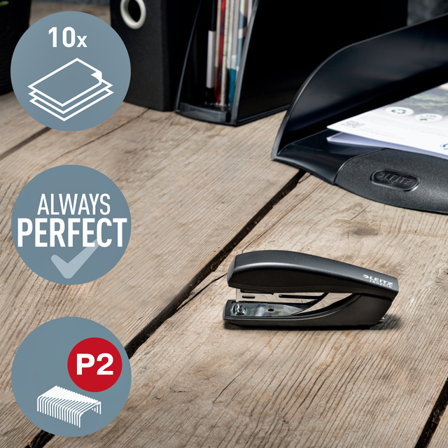 Leitz is een zeer bekend topmerk in de wereld van kantoorartikelen. Met producten van Leitz kun je je documenten organiseren. Mappen, nietjes,ordners, ringbanden, nietmachines, perforatoren, brievenbakjes enzovoorts.