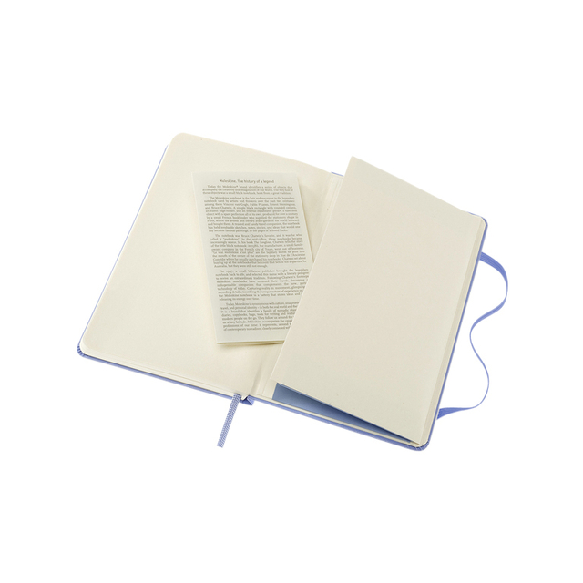 * Dit Moleskine notitieboek is een trouwe reisgezel is ideaal voor teksten, gedachten en briefjes. Het boek beschikt over een gebonden, kartonnen kaft met afgeronde hoeken, zuurvrij papier, een bladwijzer, een elastische sluiting en een uitbreidbaar binnenvak met een tekst over de geschiedenis van Moleskine. * Kenmerken: afgeronde hoeken, elastische sluiting, ivoorkleurig Moleskine-papier, bijpassend leeslint, papier: 70 gsm, zuurvrij, “In geval van verlies”-label op het schutblad, uitbreidbaar binnenvak op achterkaft. * Herbruikbare papierband heeft B-kant met extra gedrukte hulpmiddelen. * Platliggend, opent 180°. Moleskine S.p.A. maakt en verkoopt FSC & gecertificeerde producten.