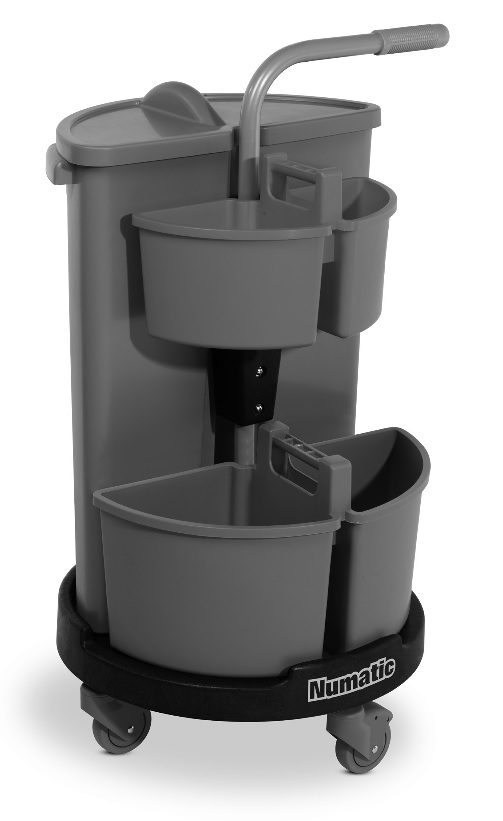 Numatic Carrousel NCR3 compacte werkwagen voor professioneel gebruik. Standaard geleverd met 70 liter afvalemmer 4 liter tray 10 liter tray en 80 mm zwenkwielen. Het onderstel is gemaakt van gerecycled materiaal en heeft het ReFlo keurmerk.
