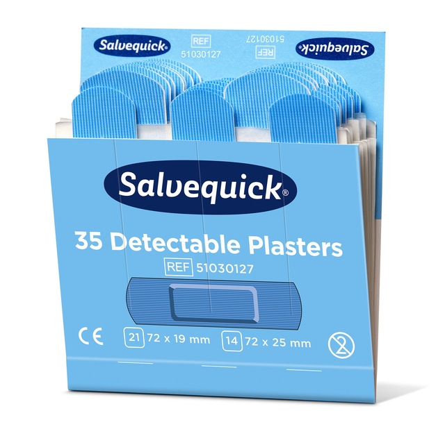 Pleisters Salvequick blauw detectabel refill 6x 35 stuks
