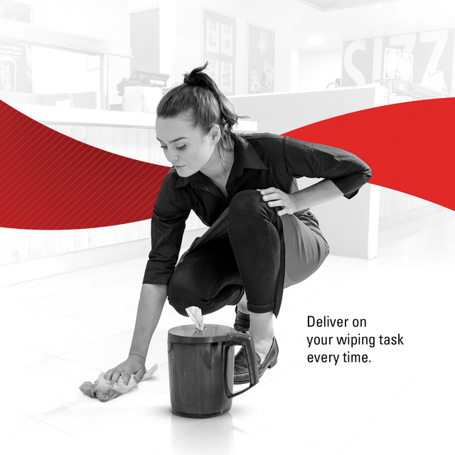 * WypAll L10 schoonmaakpapier voor horeca en persoonlijke verzorging 6223, 1-laags, blauw 6 centerfeedrollen x 430 papieren doeken (in totaal 2580) * Ongeacht met welke oppervlakken uw werknemers en bezoekers de hele dag in aanraking komen, u geeft ze meer gemoedsrust door beproefde reinigings- en desinfectieoplossingen voor de hygiëne van de werkplek te bieden die de overdrachtketen van ziektekiemen zullen helpen verbreken. * WypAll® L10 Professional schoonmaakpapier is ontworpen voor de specifieke omgevingen waarin ze worden gebruikt, zodat ze elke keer weer uw schoonmaaktaken aankunnen. Deze blauwe papieren doeken voor eenmalig gebruik op een centrale invoerrol zijn 1-laags en ontworpen voor lichte reinigingstaken in omgevingen waar voedsel wordt verwerkt en verstrekt. De WypAll® reliëfstructuur verhoogt de sterkte van de vellen dankzij het unieke patroon met laagverbindingen over het gehele oppervlak van het vel, waardoor elk vel van de WypAll® L10 blauwe rol er aantrekkelijker uitziet en prettiger aanvoelt. De blauwe rol is zo ontworpen dat deze gemakkelijk herkenbaar is in omgevingen waar besmettingsbescherming van essentieel belang is. * Deze blauwe rol is speciaal gemaakt voor gebruik met de draagbare WypAll® Reach™-dispenser voor papieren poetsdoeken (6221). Dit draagbare en afgesloten systeem is eenvoudig te gebruiken en is ontworpen om uw centerfeedrol schoon te houden, waardoor wordt voorkomen dat voedselbacteriën worden verspreid. * De dosering van één vel is ontworpen om besmetting tot een minimum te beperken en tegelijkertijd een efficiënt gebruik van de papieren poetsdoeken te stimuleren. De dosering per vel vermindert het papierverbruik met meer dan 20% en vermindert de hoeveelheid papierafval met meer dan 20%. * Dankzij de reliëftechnologie biedt deze blauwe rol papieren poetsdoeken een uitstekende balans tussen prestaties en waarde. * Deze WypAll®-poetsdoeken zijn ontworpen voor eenmalig gebruik met reinigingsmiddel of desinfecterend middel. Deze droge poetsdoeken zijn getest en geschikt bevonden voor gebruik met sprays die perazijnzuur, waterstofperoxide en 'quats' (quaternaire ammoniumverbindingen) bevatten. Dankzij de geschiktheid voor bevochtiging met een spray en schoonvegen, kunnen werknemers hun eigen werkplek, voertuig, bureau, stoel en voedselbereidingsruimte voor en na gebruik schoonvegen. Sproeien en afvegen helpt productiemedewerkers ook om hun eigen werkstation schoon te maken/te ontsmetten voordat ze deze aan de volgende werkploeg overdragen. Voor omgevingen waar schoonvegen met een volledig doordrenkte poetsdoek een vereiste is, zijn deze WypAll®-schoonmaakrollen getest en geschikt bevonden voor sop/schoonmaakmiddel. * Volg altijd de instructies van de fabrikant voor verdunning, toepassing en contacttijd op.* Het afzonderlijke velformaat is 38 cm (L) x 18,5 cm (B). 6 rollen x 430 blauwe, 1-laags vellen (2580 in totaal)