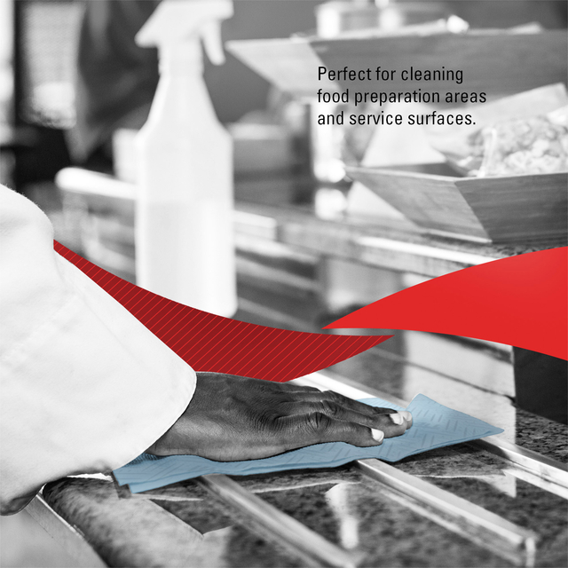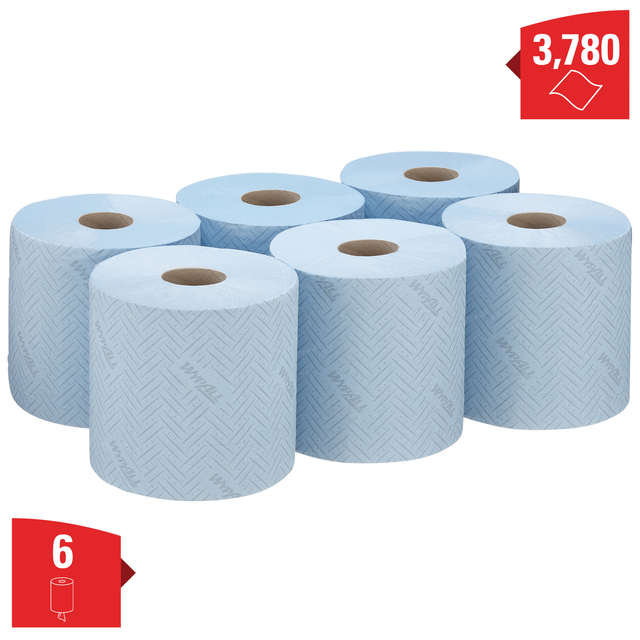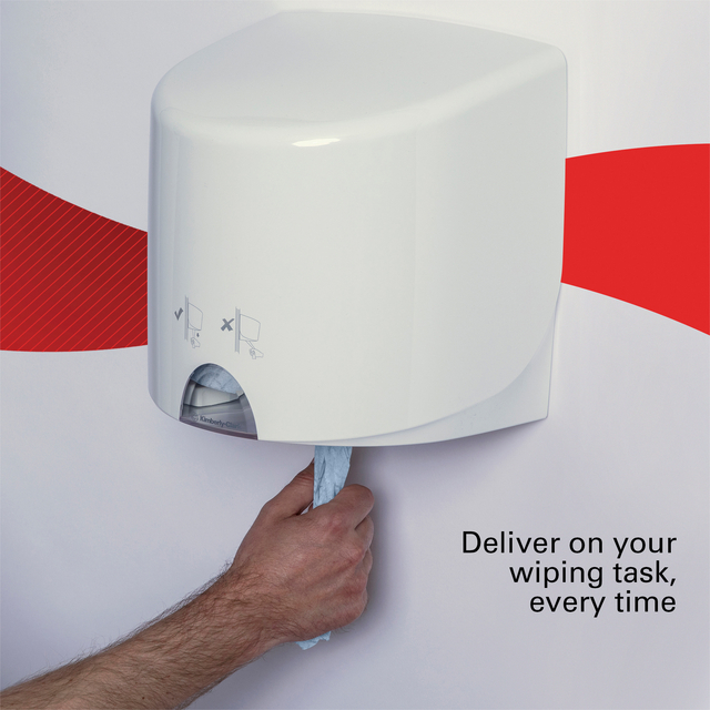 ( WypAll L10-poetsdoeken voor horeca en persoonlijke verzorging 7494 - 6 blauwe rollen x 630 papieren poetsdoeken (3780 in totaal) * Ongeacht met welke oppervlakken uw werknemers en bezoekers de hele dag in aanraking komen, u geeft ze meer gemoedsrust door beproefde reinigings- en desinfectieoplossingen voor de hygiëne van de werkplek te bieden die de overdrachtketen van ziektekiemen helpen verbreken. * WypAll L10-poetsdoeken voor horeca en persoonlijke verzorging zijn zodanig ontworpen dat u elke poetstaak aankunt. Deze geperforeerde blauwe centrefeedrollen met één vel afgifte en merkreliëf zijn middelgroot en hebben een hoge capaciteit. * De compacte poetsdoeken met meer vellen per rol hoeven minder vaak bijgevuld te worden en zorgen voor minder vrachtwagens op de weg, waardoor u hogere duurzaamheidsnormen kunt behalen door uw CO2-uitstoot en afval te verminderen. * Onze unieke Airflex-technologie zorgt voor uitzonderlijke sterkte en absorptie in elke papieren poetsdoek. De blauwe rol is ontworpen zodat ze gemakkelijk herkenbaar zijn in omgevingen waar besmettingsbescherming van essentieel belang is. * De veelzijdige, 1-laags papieren poetsdoekrollen kunnen binnen of buiten een dispenser worden gebruikt om aan uw behoeften te voldoen. WYPALL L10-poetsdoekrollen voor horeca en persoonlijke verzorging zijn compatibel met onze draagbare WypAll ReachPlus-dispenser (6521) en ook onze wandgemonteerde Aquarius Roll Control-dispensers in wit (7018) en grijs (7181), met de toevoeging van het nieuwe reserveonderdeel van de blauwe plaat (afzonderlijk te bestellen). Deze eenvoudig te reinigen poetsdoekdispensers met snellaadfunctie bieden betrouwbaardere oplossingen voor het afgeven van losse vellen. Gecontroleerde afgifte van één vel vermindert het aantal gebruikte poetsdoeken en zorgt ervoor dat de gebruiker alleen het vel aanraakt dat nodig is, voor maximale hygiëne en betere kostenbeheersing. * Deze blauwe WypAll-poetsdoeken kunnen eenmalig worden gebruikt met reinigingsmiddel of desinfectiemiddel. Deze Kimberly-Clark-poetsdoeken zijn getest en geschikt bevonden voor gebruik met sprays die perazijnzuur, waterstofperoxide en 'quats' (quaternaire ammoniumverbindingen) bevatten. Dankzij de geschiktheid voor bevochtiging met een spray en schoonvegen, kunnen werknemers hun eigen werkplek, voertuig, bureau, stoel en voedselbereidingsruimte voor en na gebruik schoonvegen. Sproeien en afvegen helpt productiemedewerkers ook om hun eigen werkstation schoon te maken/te ontsmetten voordat ze deze aan de volgende werkploeg overdragen. Voor omgevingen waar schoonvegen met een volledig doordrenkte poetsdoek een vereiste is, zijn deze WypAll-schoonmaakrollen getest en geschikt bevonden voor sop/schoonmaakmiddel. Volg altijd de instructies van de fabrikant voor verdunning, toepassing en contacttijd op. * De WypAll L10-centrefeedrollen voor horeca en persoonlijke verzorging zijn ontworpen voor licht hygiënisch schoonmaakwerk zoals het reinigen van oppervlakken voor voedselbereiding en bediening. * Elke poetsdoek is geschikt voor contact met voedsel en heeft een afmeting van 38 cm (L) x 18,3 cm (B).
