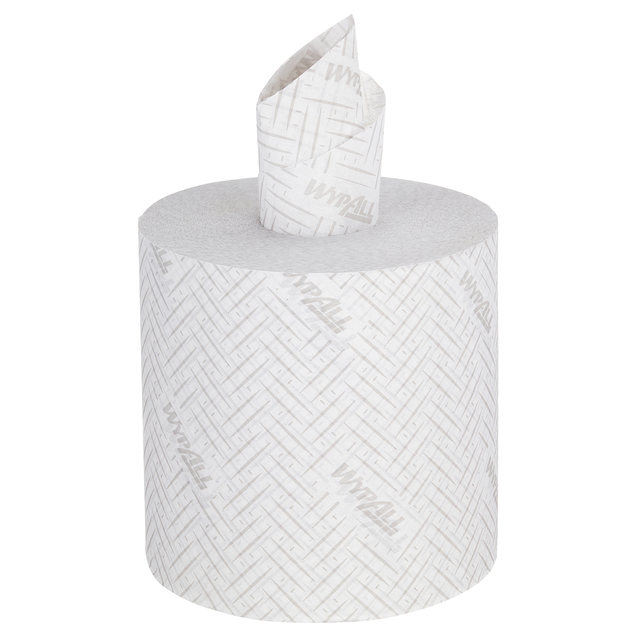 * WypAll L10 wegwerp poetsdoeken voor horeca en persoonlijke verzorging 7256 - centerfeed rol, 1-laags, wit - 6 centerfeed rollen x 800 papieren reinigingsdoeken (4800 stuks in totaal) * Ongeacht met welke oppervlakken uw werknemers en bezoekers de hele dag in aanraking komen, u geeft ze meer gemoedsrust door beproefde reinigings- en desinfectieoplossingen voor de hygiëne van de werkplek te bieden die de overdrachtketen van ziektekiemen zullen helpen verbreken. * WypAll L10 Professional schoonmaakpapier is ontworpen voor de specifieke omgevingen waarin ze worden gebruikt, zodat ze elke keer weer uw schoonmaaktaken aankunnen. Deze schoonmaak doekjes voor eenmalig gebruik op een centrale rol zijn 1-laags, middelgroot maar met een hoge capaciteit, met 800 wegwerpdoeken per rol. * De WypAll reliëfstructuur verhoogt de sterkte van de vellen dankzij het unieke patroon met laagverbindingen over het gehele oppervlak van het vel, waardoor elke vel WypAll L10 schoonmaakpapier er aantrekkelijker uitziet en prettiger aanvoelt. Het ontwerp van deze centerfeed rollen is erop gericht om de draagbaarheid te ondersteunen voor lichte reinigingstaken in omgevingen waar voedsel wordt verwerkt en verstrekt. * De reliëftechnologie in dit schoonmaakpapier zorgt voor een uitstekende balans tussen prestaties en waarde. Deze droge poetsdoeken kunnen eenmalig worden gebruikt met reinigingsmiddel of desinfecterend middel en zijn getest als compatibel voor gebruik in sprays en schoonwrijven met perazijnzuur, waterstofperoxide en quats (quaternaire ammoniumverbindingen). * Dankzij de geschiktheid voor bevochtiging met een spray en schoonvegen, kunnen werknemers hun eigen werkplek, voertuig, bureau, stoel en voedselbereidingsruimte voor en na gebruik schoonvegen. Sproeien en afvegen helpt productiemedewerkers ook om hun eigen werkstation schoon te maken/te ontsmetten voordat ze deze aan de volgende werkploeg overdragen. * Voor omgevingen waar schoonvegen met een volledig doordrenkte poetsdoek een vereiste is, zijn deze WypAll-schoonmaakrollen getest en geschikt bevonden voor sop/schoonmaakmiddel. Volg altijd de instructies van de fabrikant voor verdunning, aanbrengen en contacttijd. * Deze papieren doekjes zijn compatibel met het snel te vullen, veelzijdige en eenvoudig te reinigen Aquarius centerfeed-dispensersysteem (7017). Onze aanraakvrije dispensers verminderen het risico van kruisbesmetting. * Individuele velgrootte: 38 cm (L) x 19,5 cm (B). Elke WypAll L10 centerfeed rol bevat 800 vellen poetsdoek met reliëf Droge schoonmaak doekjes, ontworpen voor lichte hygiënische reiniging, zoals het reinigen van oppervlakken voor voedselbereiding en bediening De WypAll reliëfstructuur verhoogt de sterkte van de vellen dankzij het unieke patroon met laagverbindingen over het gehele oppervlak van het vel Centerfeed papierrollen zijn ontworpen voor gebruik met centerfeed-dispensers De reliëfstructuur van de WypAll poetsdoeken zorgt dat elke poetsdoekvel er aantrekkelijker uitziet en prettiger aanvoelt