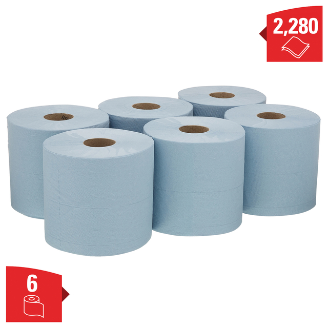 * WypAll 7302 Papieren doeken voor industriële reinigingstaken L20 Centerfeed, 2-laags, Blauw (6 rollen x 380 vellen) * WypAll Brand Professional Papieren Doeken zijn ontworpen voor de specifieke omgevingen waarin ze worden gebruikt, zodat ze elke keer weer uw schoonmaaktaken aankunnen. * Deze blauwe, 2-laagse industriële centerfeed rollen met poetsdoeken voor eenmalig gebruik zijn middelgrote, draagbare, extra duurzame rollen die zijn ontworpen voor zware poetstaken. * Onze gepatenteerde Airflex technologie zorgt voor uitzonderlijke stevigheid en absorptievermogen. * Deze rollen zijn compatibel met het snel te vullen, veelzijdige en eenvoudig te reinigen Aquarius Centerfeed Dispensersysteem (7017). * Individuele velgrootte: 38 cm (L) x 18,5 cm (B).