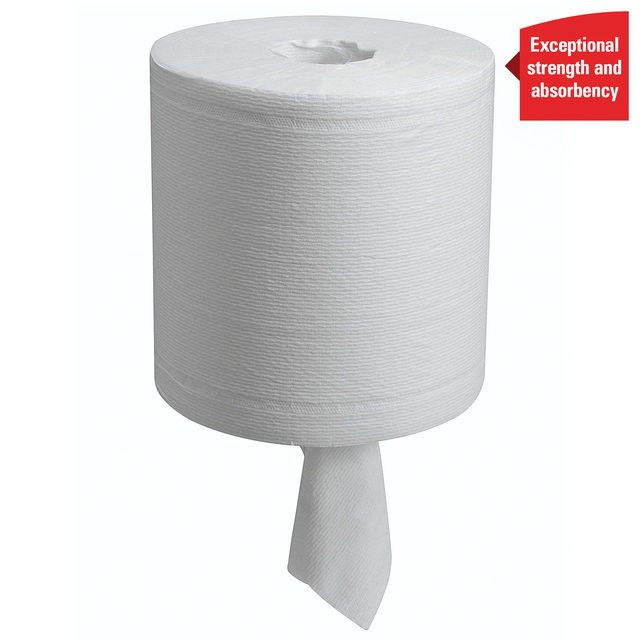 * WypAll® 7303 Papieren doeken voor industriële reinigingstaken L20 Centerfeed, 2-laags, Wit (6 rollen x 380 vellen) * WypAll® Brand Professional Papieren Doeken zijn ontworpen voor de specifieke omgevingen waarin ze worden gebruikt, zodat ze elke keer weer uw schoonmaaktaken aankunnen. * Deze witte, 2-laagse industriële centerfeed rollen met poetsdoeken voor eenmalig gebruik zijn middelgrote, draagbare, extra duurzame rollen die zijn ontworpen voor zware poetstaken. * Onze gepatenteerde Airflex™ technologie zorgt voor uitzonderlijke stevigheid en absorptievermogen. * Deze rollen zijn compatibel met het snel te vullen, veelzijdige en eenvoudig te reinigen Aquarius™ Centerfeed Dispensersysteem (7017). * Individuele velgrootte: 38 cm (L) x 18,3 cm (B).