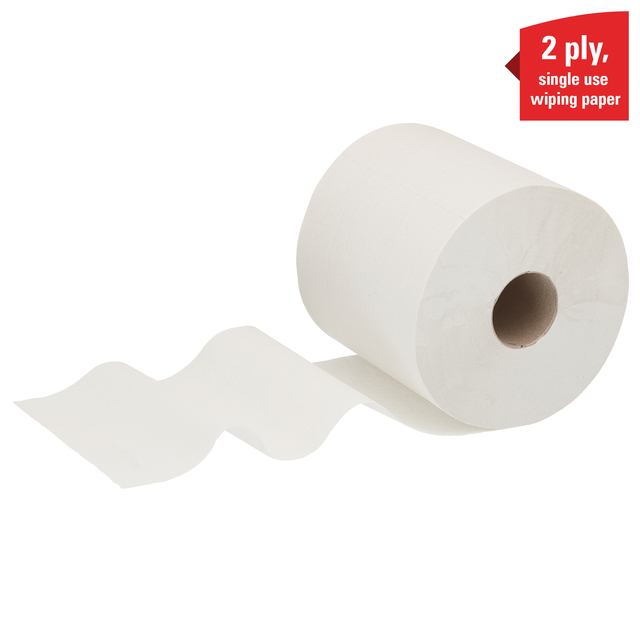 * WypAll L10 wegwerp poetsdoeken voor horeca en persoonlijke verzorging 7256 - centerfeed rol, 1-laags, wit - 6 centerfeed rollen x 800 papieren reinigingsdoeken (4800 stuks in totaal) * Ongeacht met welke oppervlakken uw werknemers en bezoekers de hele dag in aanraking komen, u geeft ze meer gemoedsrust door beproefde reinigings- en desinfectieoplossingen voor de hygiëne van de werkplek te bieden die de overdrachtketen van ziektekiemen zullen helpen verbreken. * WypAll L10 Professional schoonmaakpapier is ontworpen voor de specifieke omgevingen waarin ze worden gebruikt, zodat ze elke keer weer uw schoonmaaktaken aankunnen. Deze schoonmaak doekjes voor eenmalig gebruik op een centrale rol zijn 1-laags, middelgroot maar met een hoge capaciteit, met 800 wegwerpdoeken per rol. * De WypAll reliëfstructuur verhoogt de sterkte van de vellen dankzij het unieke patroon met laagverbindingen over het gehele oppervlak van het vel, waardoor elke vel WypAll L10 schoonmaakpapier er aantrekkelijker uitziet en prettiger aanvoelt. Het ontwerp van deze centerfeed rollen is erop gericht om de draagbaarheid te ondersteunen voor lichte reinigingstaken in omgevingen waar voedsel wordt verwerkt en verstrekt. * De reliëftechnologie in dit schoonmaakpapier zorgt voor een uitstekende balans tussen prestaties en waarde. Deze droge poetsdoeken kunnen eenmalig worden gebruikt met reinigingsmiddel of desinfecterend middel en zijn getest als compatibel voor gebruik in sprays en schoonwrijven met perazijnzuur, waterstofperoxide en quats (quaternaire ammoniumverbindingen). * Dankzij de geschiktheid voor bevochtiging met een spray en schoonvegen, kunnen werknemers hun eigen werkplek, voertuig, bureau, stoel en voedselbereidingsruimte voor en na gebruik schoonvegen. Sproeien en afvegen helpt productiemedewerkers ook om hun eigen werkstation schoon te maken/te ontsmetten voordat ze deze aan de volgende werkploeg overdragen. * Voor omgevingen waar schoonvegen met een volledig doordrenkte poetsdoek een vereiste is, zijn deze WypAll-schoonmaakrollen getest en geschikt bevonden voor sop/schoonmaakmiddel. Volg altijd de instructies van de fabrikant voor verdunning, aanbrengen en contacttijd. * Deze papieren doekjes zijn compatibel met het snel te vullen, veelzijdige en eenvoudig te reinigen Aquarius centerfeed-dispensersysteem (7017). Onze aanraakvrije dispensers verminderen het risico van kruisbesmetting. * Individuele velgrootte: 38 cm (L) x 19,5 cm (B).