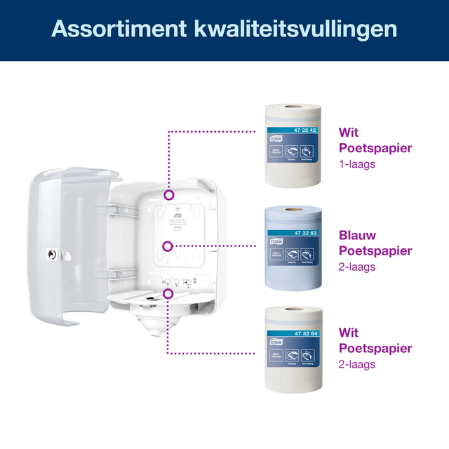 We hebben ze op voorraad en zullen ze snel aan je kunnen leveren. Tork biedt vaak een totaaloplossing, je kunt houders en vullingen hand in hand bestellen. Tork levert wereldwijd aan gebruikers in de sectoren: gezondheidszorg, horeca, industrie en office. Door de jarenlange ervaring en expertise op het gebied van hygi?ne en duurzaamheid, is Tork marktleider in verschillende sectoren. Tork is onderdeel van het SCA merkportfolio.