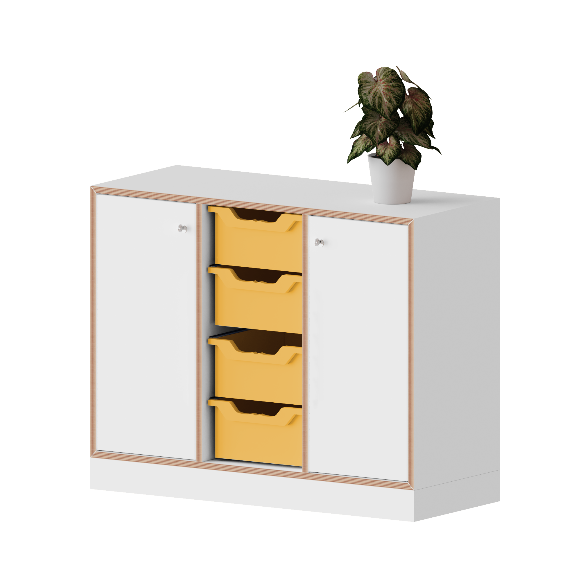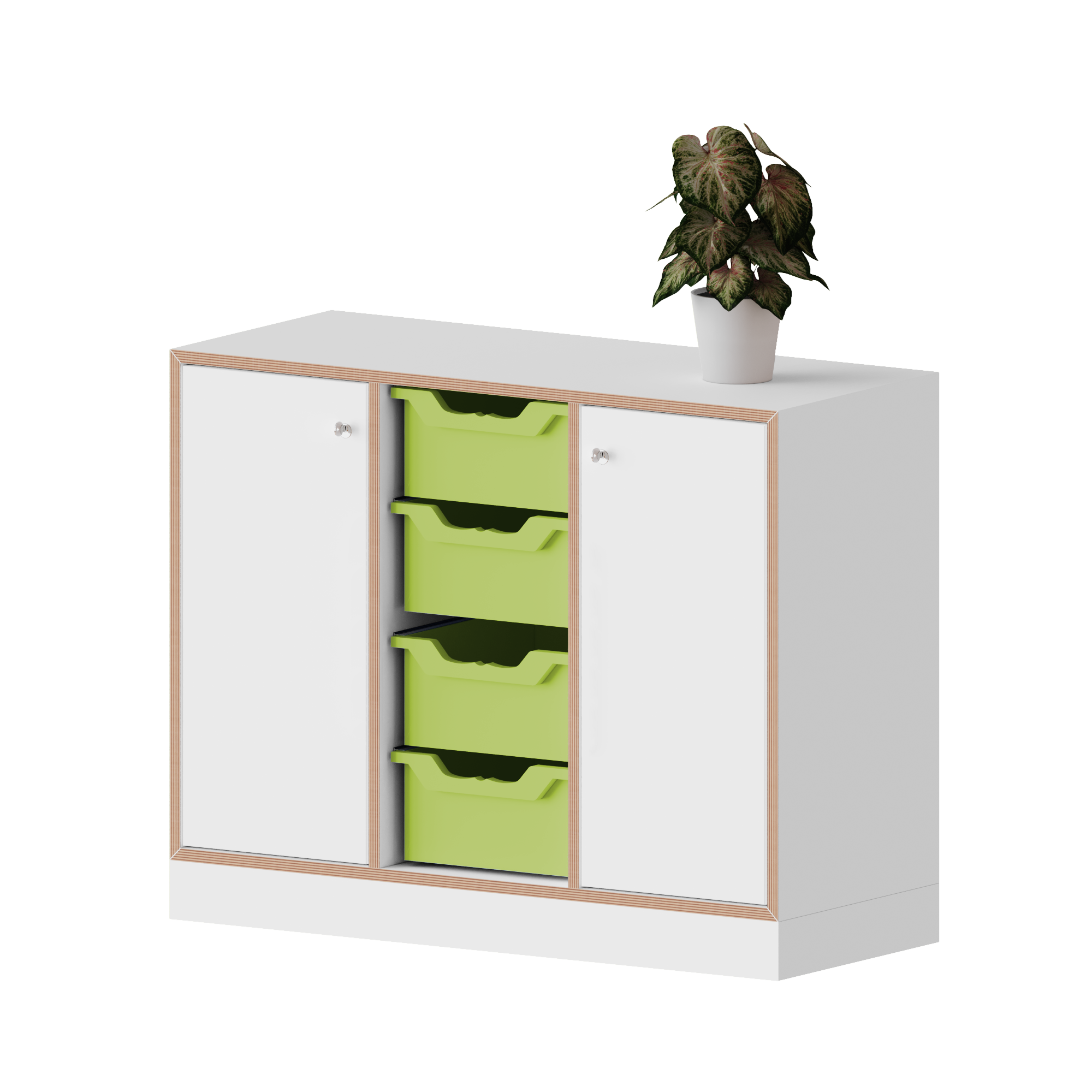 qickly® kast, 2 ordnerhoogtes, 2 deuren met slot, 4 grote Ergo Tray bakken - B/H/D: 104,2x74,3x42,6 cm