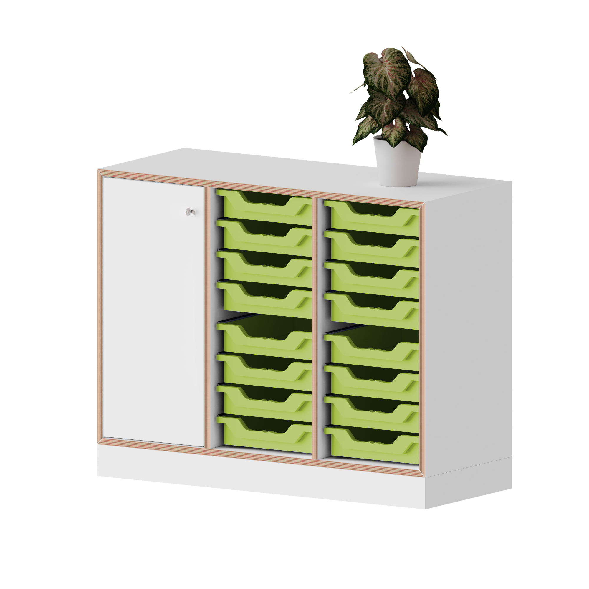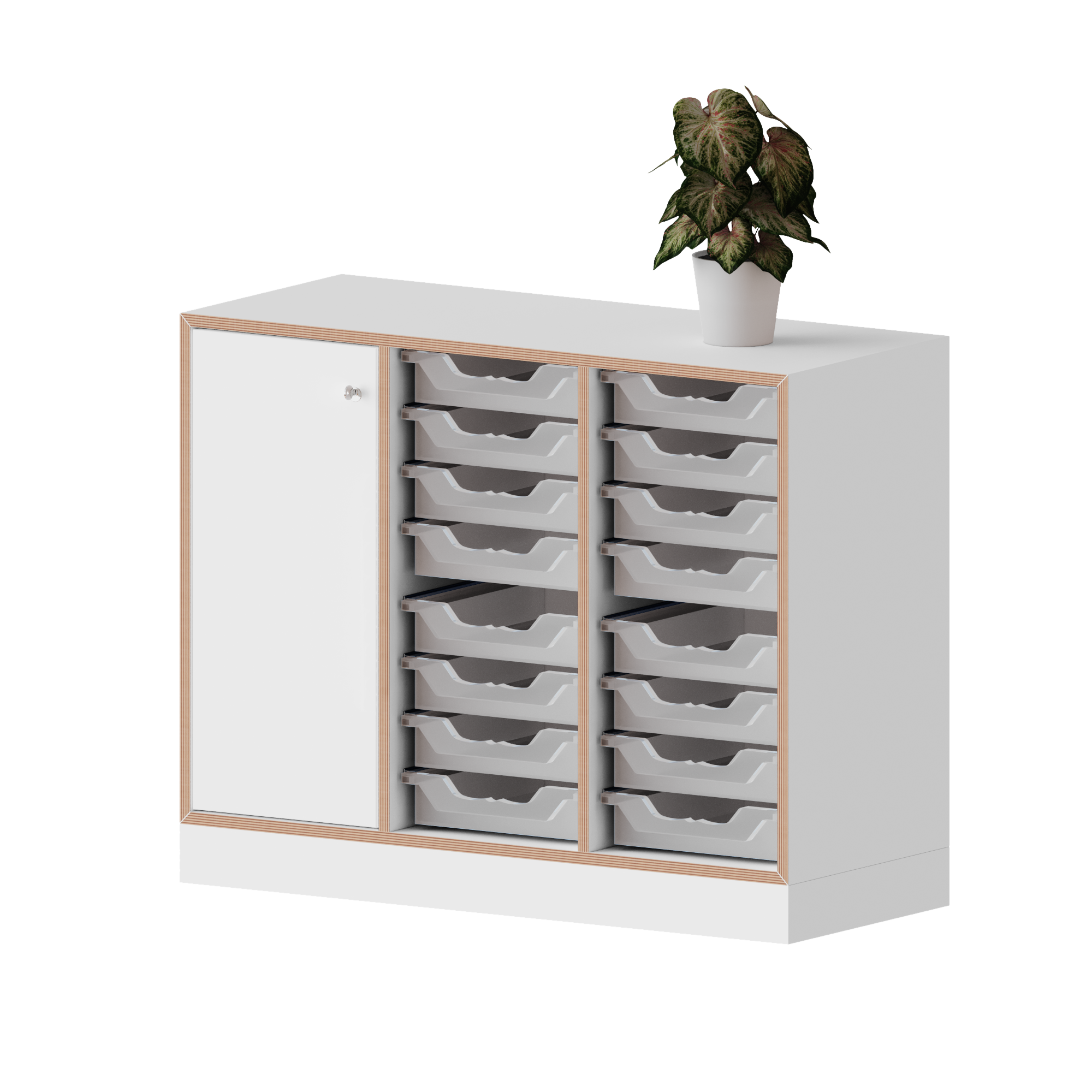 qickly® kast, 2 ordnerhoogtes, linkerdeur met slot, 16 kleine Ergo Tray bakken - B/H/D: 104,2x74,3x42,6 cm