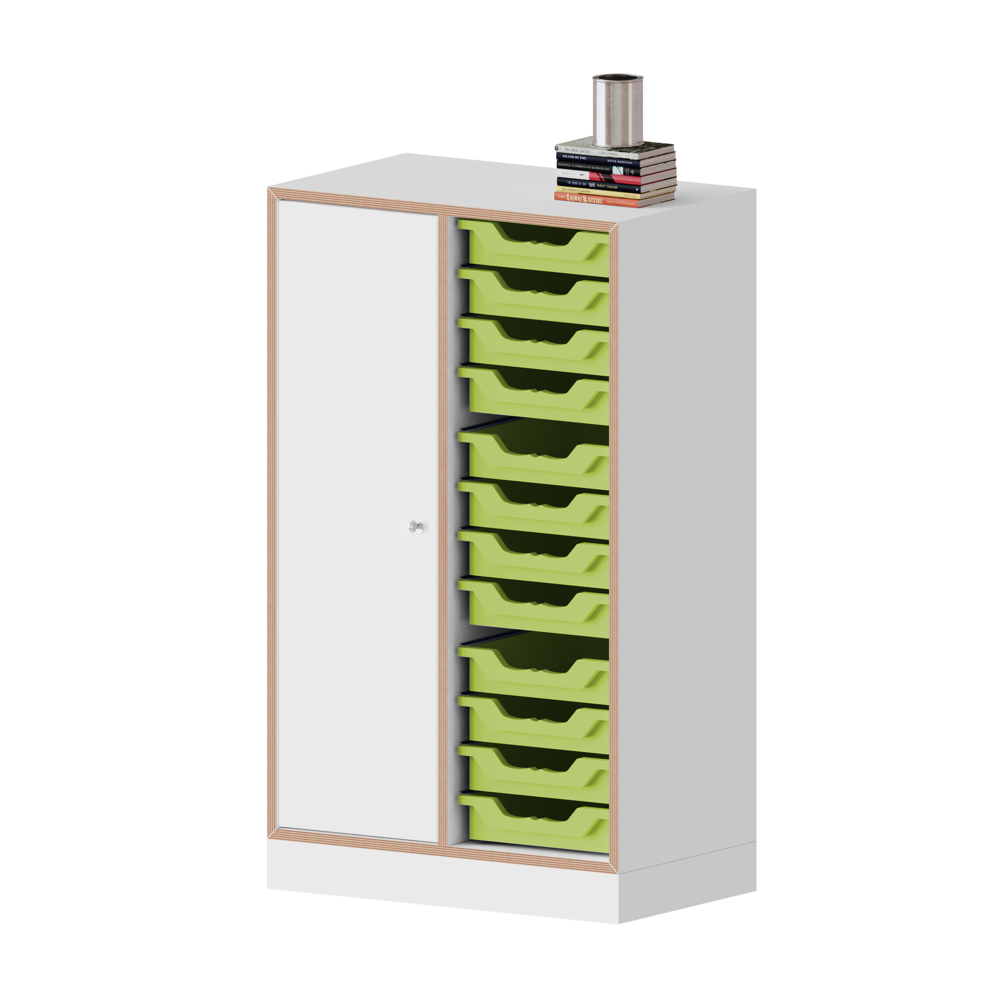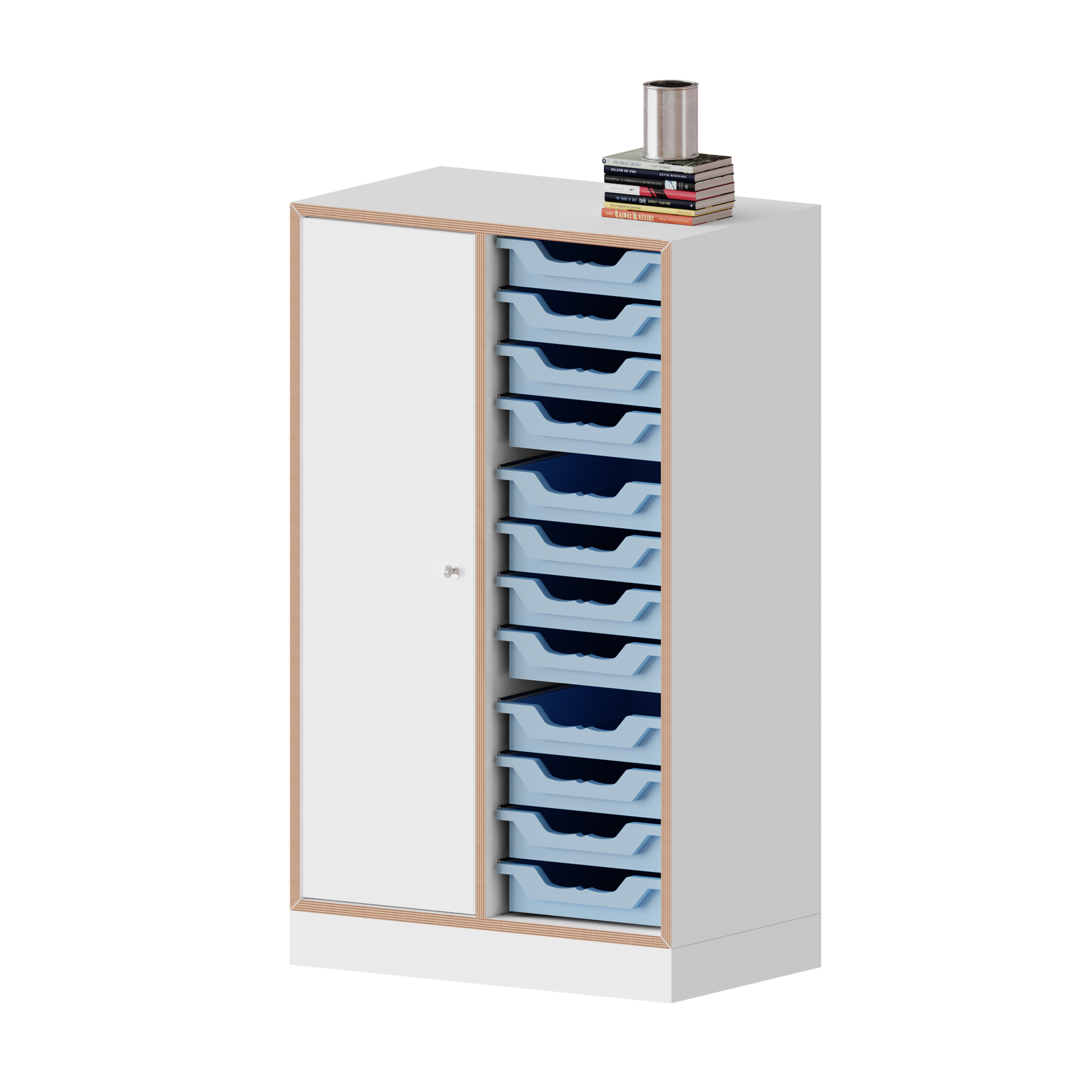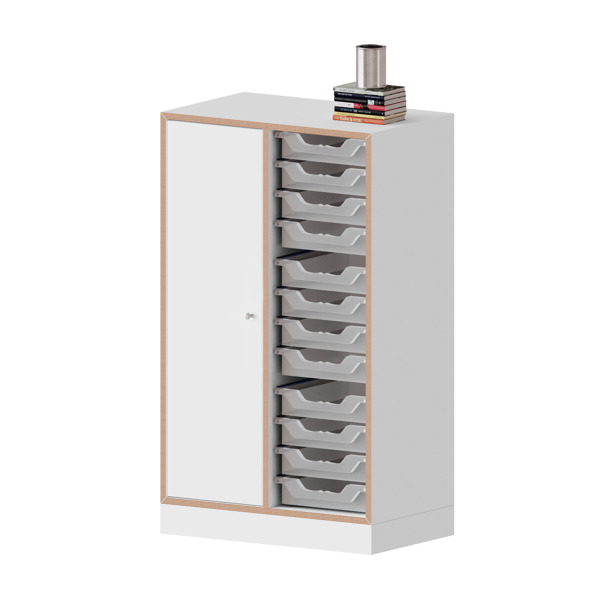 qickly® kast, 3 ordnerhoogtes, 1 deur met slot, 12 kleine Ergo Tray bakken - B/H/D: 70,1x110,5x42,6 cm